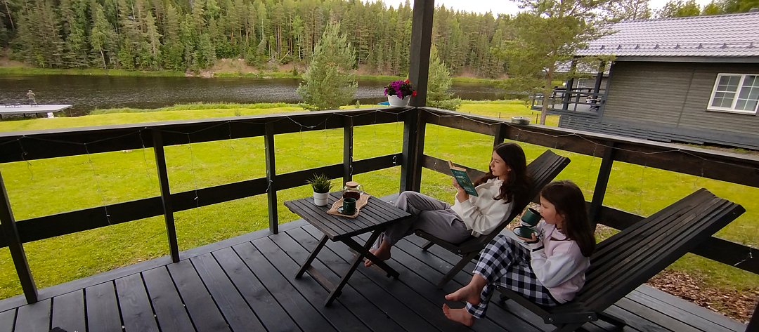 Рыбалка прямо с берега, прогулки по лесным тропинкам, живописное озеро всего в 5 минутах и настоящий карельский воздух — чистый, наполненный ароматами сосен и свободой.