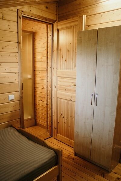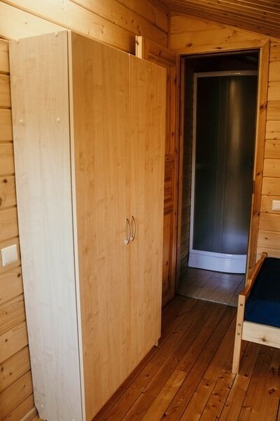 В номере: Две односпальные кровати, санузел, душевая. стол, два табурета, тумбочка, шкаф для одежды, Wi-fi.