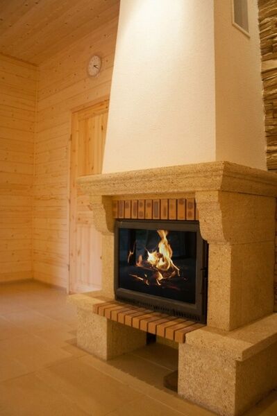 Просторная сауна с каминным залом. Большая парилка, дровяная печь облицованная талькохлоритом обеспечивает «мягкий» пар . Душевая (2 душа, вода напрямую из источника).