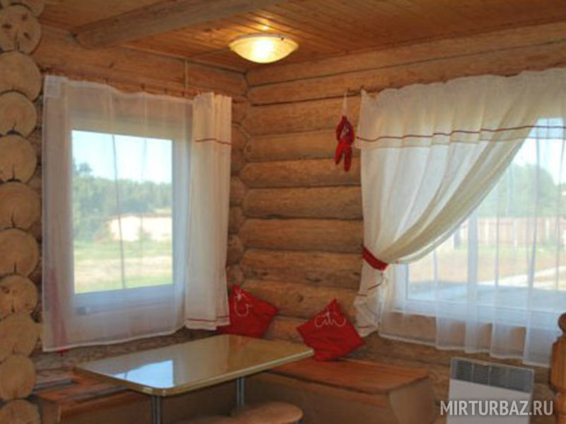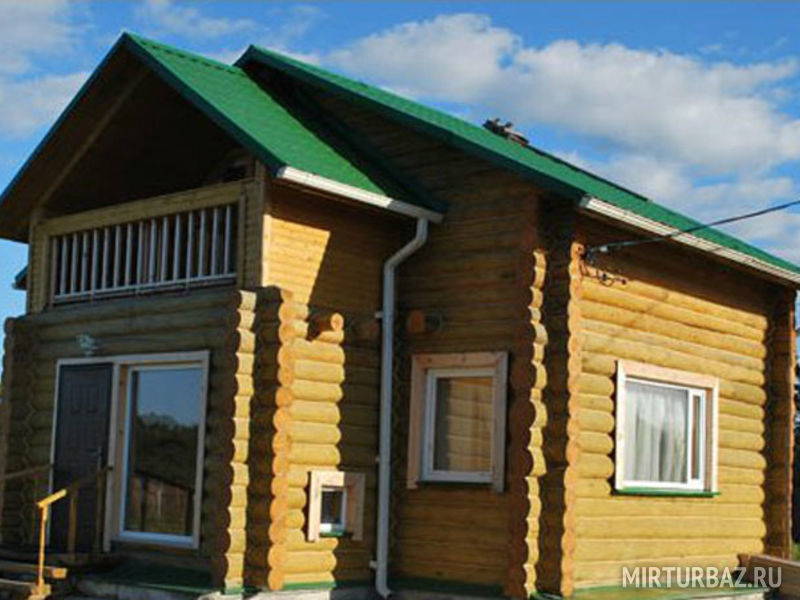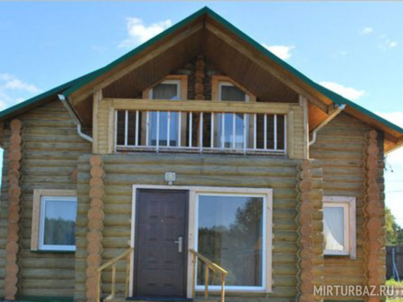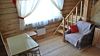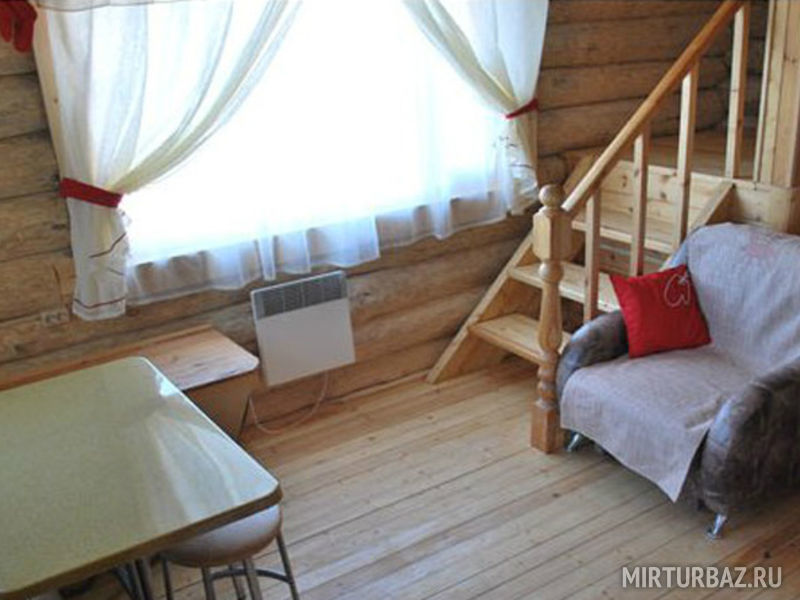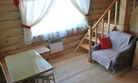 На втором этаже, куда гостей ведет деревянная лестница, находится спальня с балконом. В спальне размещены деревянные двуспальная и полуторная кровати.