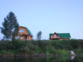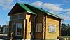 После указателя "Киндасово" в начале деревни – первый поворот направо. Увидите деревянный забор, за которым находятся 3 дома с зелеными крышами выполненных в карельском стиле.