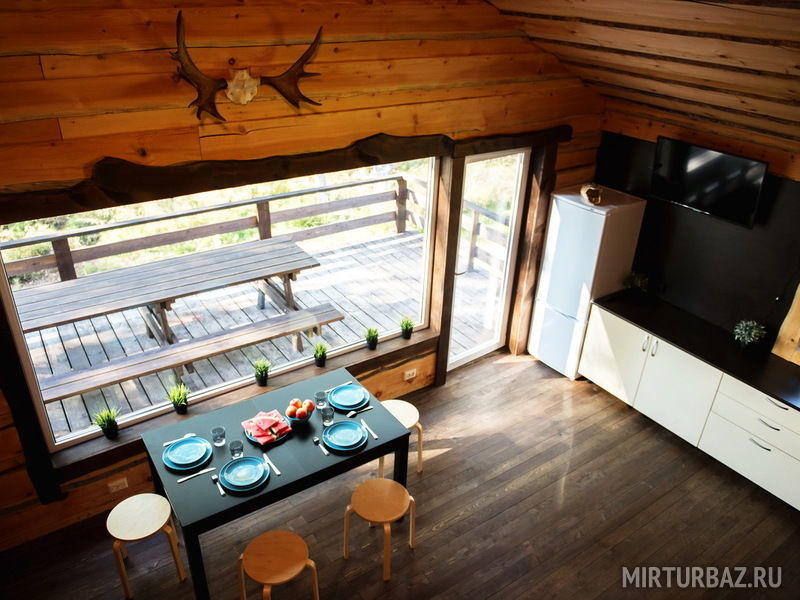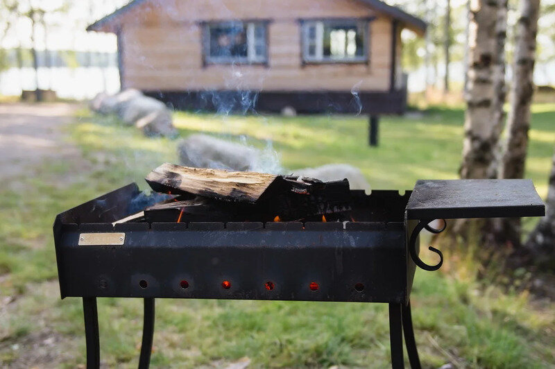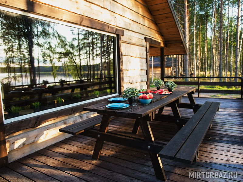 У каждого дома базы отдыха имеется оборудованная терраса с площадкой для шашлыка и барбекю. Мангал, шампура и решетки для мяса при аренде дома предоставляются бесплатно.