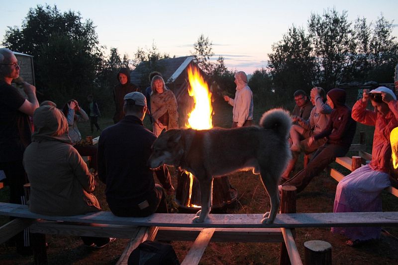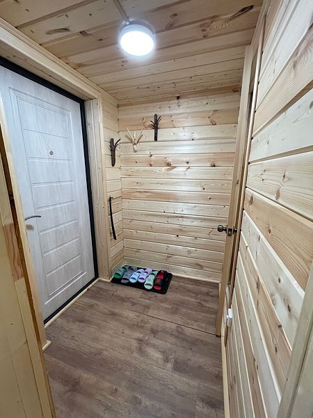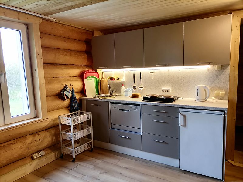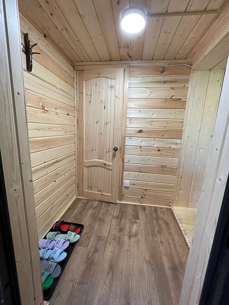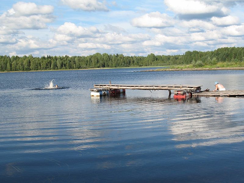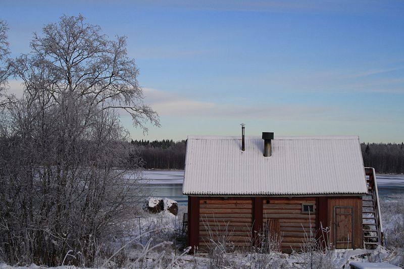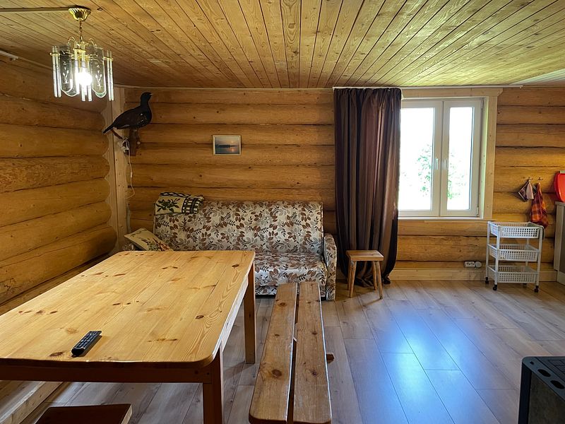 Баня находится в 100 м от озера. В ней есть две парилки: по-чёрному и по-белому, зона для отдыха, стол, лавки.