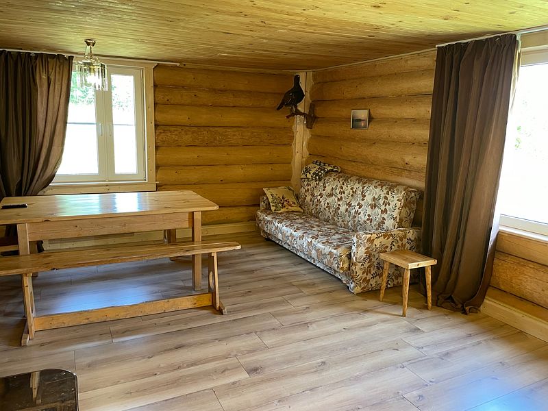 В вашем распоряжении удобные небольшие коттеджи из елового и соснового кругляка и мини гостиница. В одном коттедже комфортно могут разместиться 6 человек. В мини-гостинице 5 двух- и четырехместных номеров. Каждый номер выполнен в своей цветовой и стилистической манере.