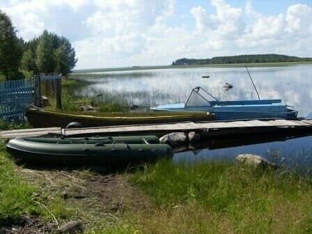 За Малым гостевым домом находится пристань, где стоит лодка (весельная).