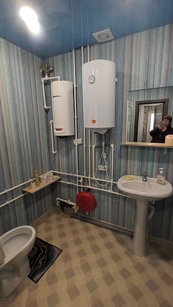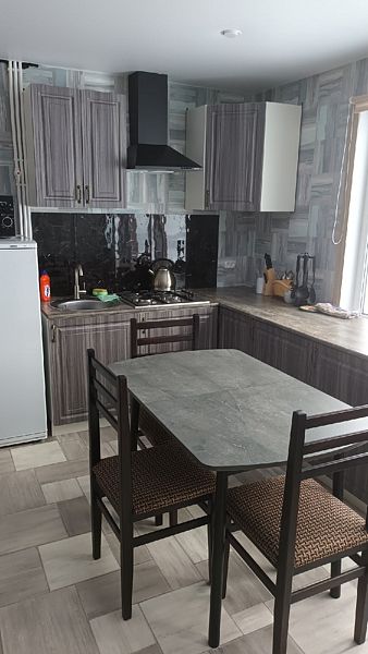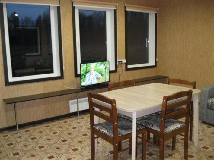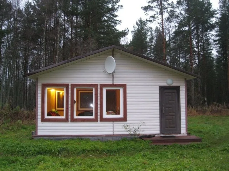В доме 2 комнаты : спальная(2 раздельные кровати, шкаф) и гостиная( раздвижной угловой диван на 2 спальных места, телевизор Триколор, WI-FI , стол, стулья, кухонный уголок- холодильник, газовая поверхность, набор посуды, микроволновка). В доме санузел ( душевая кабина, туалет, раковина, сушилка для обуви и вещей).