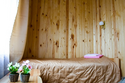 Баня находится на берегу озера. В бане дровяная парилка, сауна, душевая, санузел, комната отдыха с камином, где могут разместиться до 10 человек. По желанию отдыхающих есть возможность доставки еды, шашлыка, чая из самовара на углях.