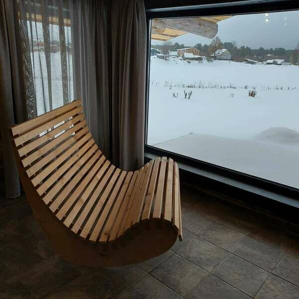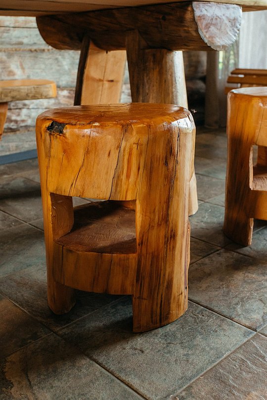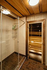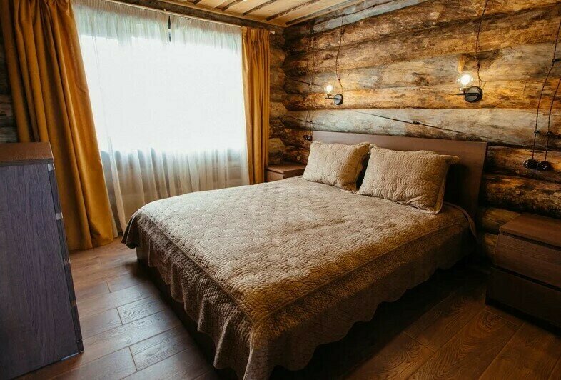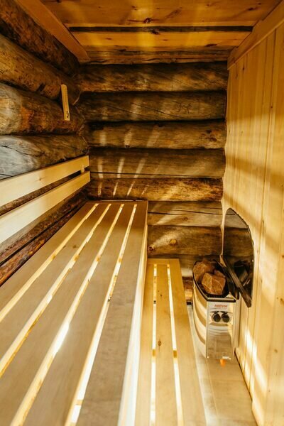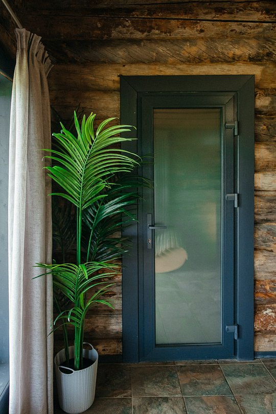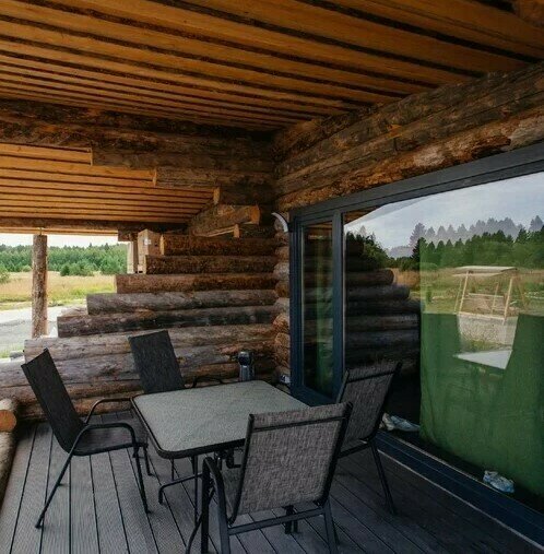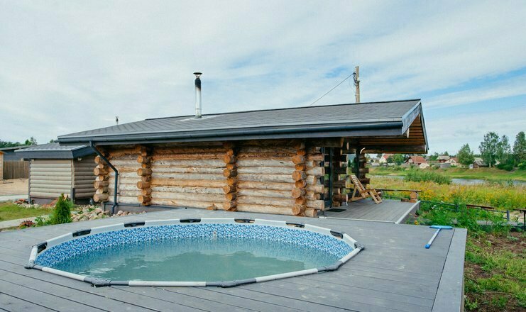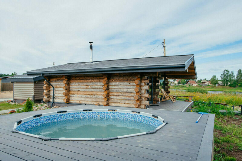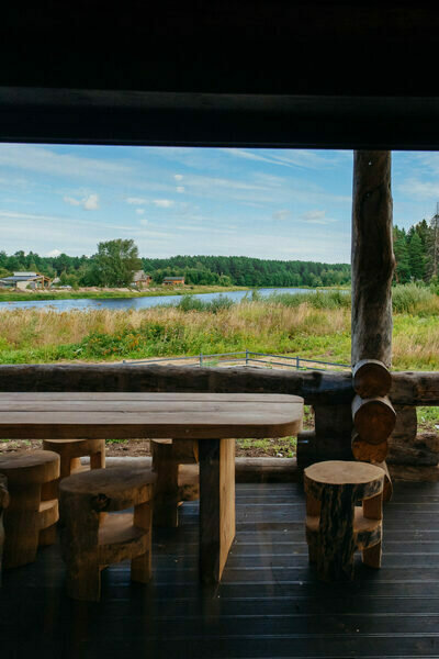 В просторной парной вас ждут шампуни, скрабы, аромамасла и специальные шапки. После парной вы можете окунуться в реку (оборудованы мостки) или небольшой бассейн, который находится рядом, а можно просто посидеть в кресле-качалке на террасе, любуясь природой.