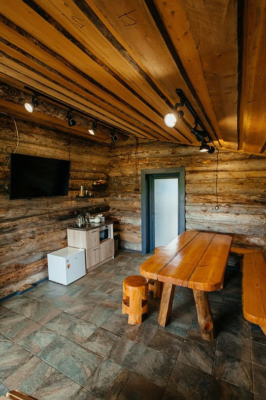 Парная и комната отдыха рассчитаны на комфортный отдых 4-6 человек. В комнате отдыха оборудован кухонный уголок с микроволновой печью, чайником и посудой.