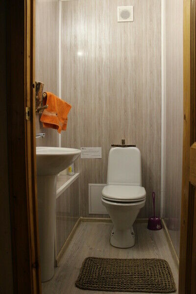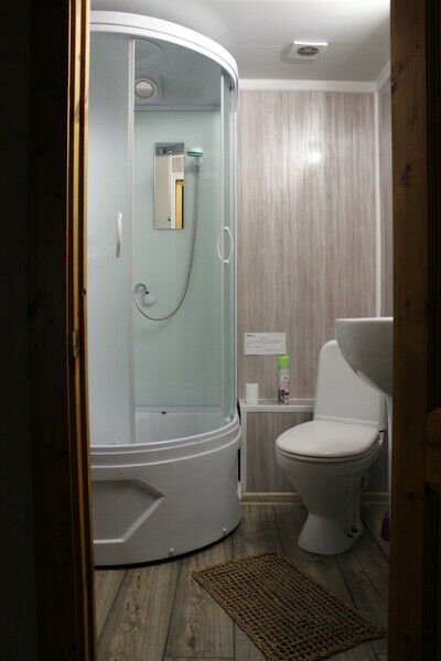 Здесь находится администратор и кают-компания – уютный каминный зал с большим телевизором и Wi-Fi. В Доме Полярника два санузла и душевая кабина.