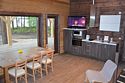 В домике: мягкая мебель, большой обеденный стол, кабельное телевидение, полный набор посуды, холодильник, две электроконфорки, посудомоечная машина, постельное белье, полотенца, душ, туалет, бойлер, фен, шезлонги, принадлежности для барбекю, электрическая сауна.