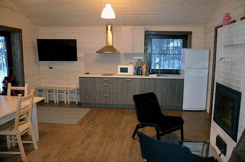 Оборудован всем необходимым (мебель, кухонные принадлежности, санузел, цифровое ТВ), и даже больше – к Вашим услугам электрическая сауна, которой можно пользоваться в любое время.
