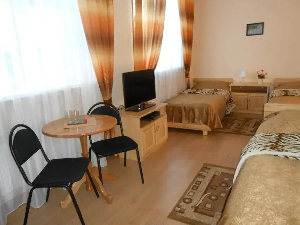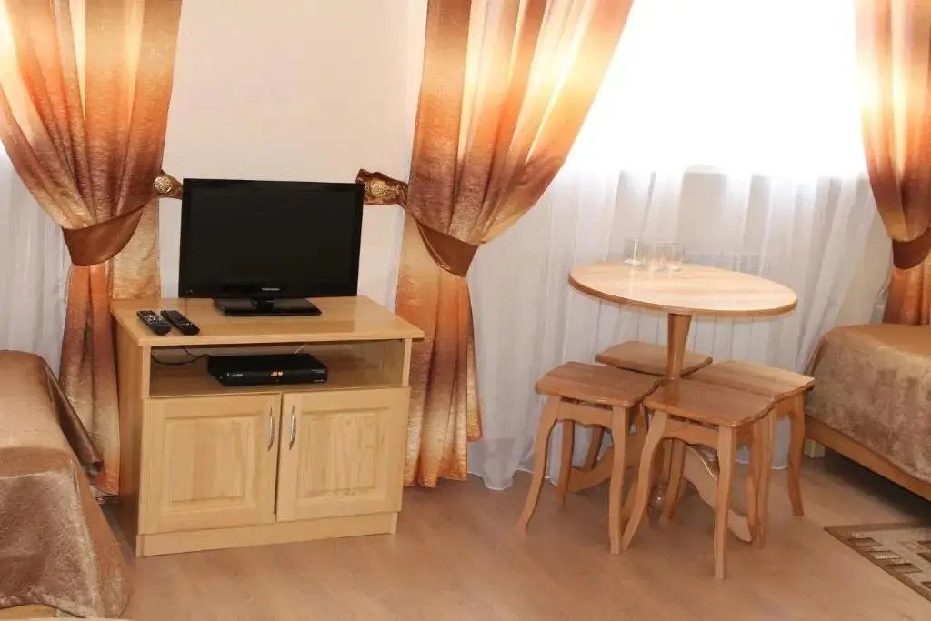 В номерах: телевизор, холодильник,чайник, халат и тапочки. Оснащение зависит от выбранной категории номера.