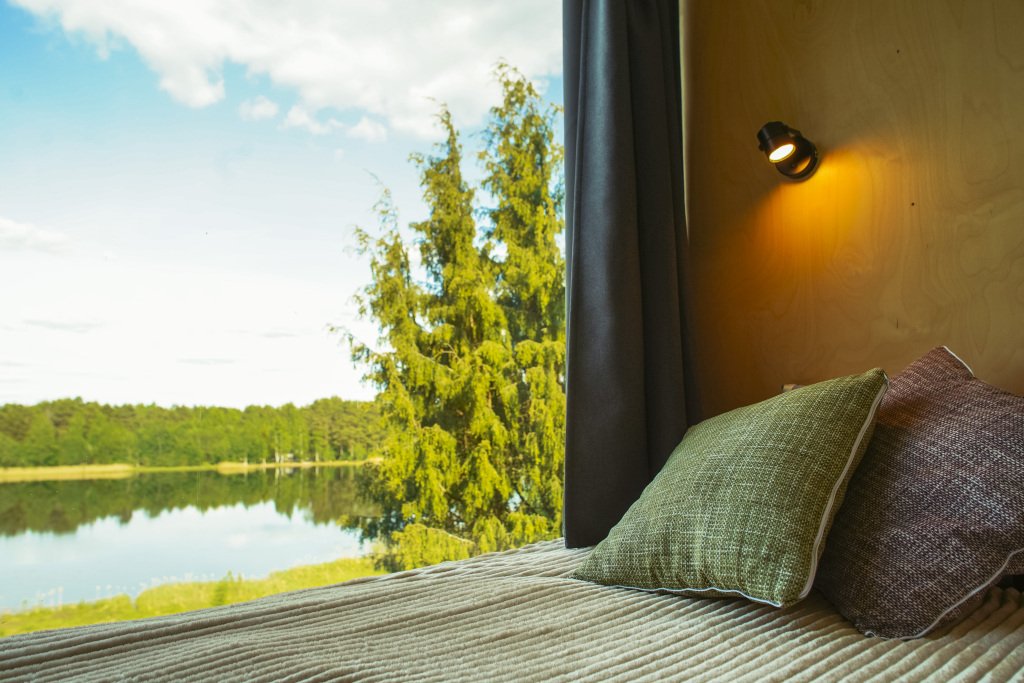 Глэмпинг готов предоставить своим гостям комфортные условия с полностью оборудованных для всех нужд домами, панорамные окна которых открывают завораживающий вид на озеро. Предоставляются к пользованию беседки, мангальные и костровые зоны, оборудованные места для палаток и прокат лодок.