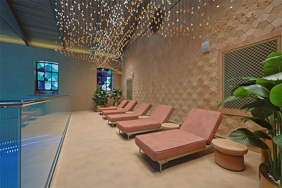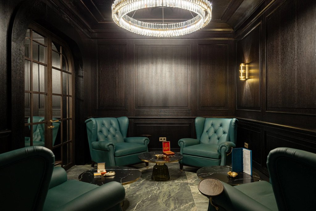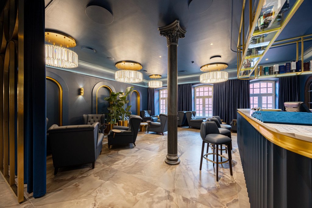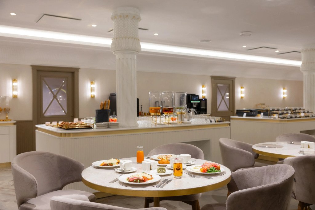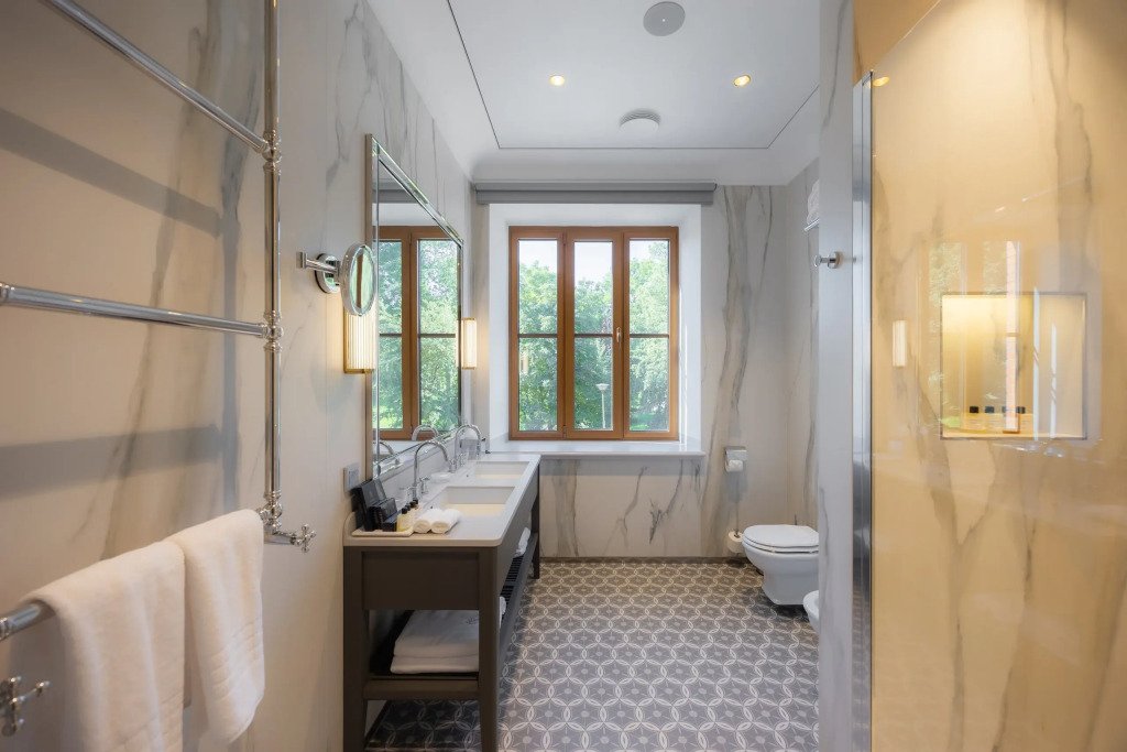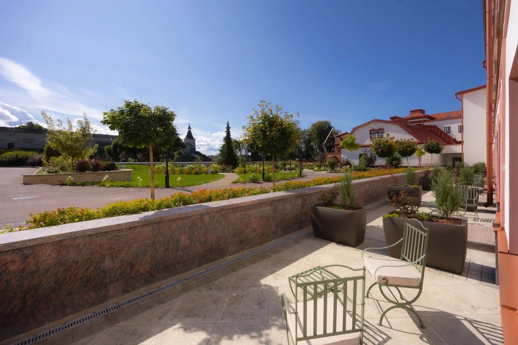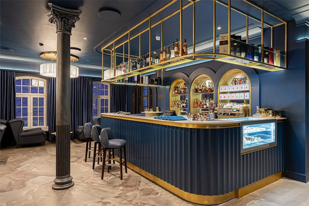В отеле работает ресторан русской кухни с французскими элементами, бар, конференц-зал и зал мероприятий с террасой. Также доступен банный комплекс с бассейном, сигарная комната и бильярдная.