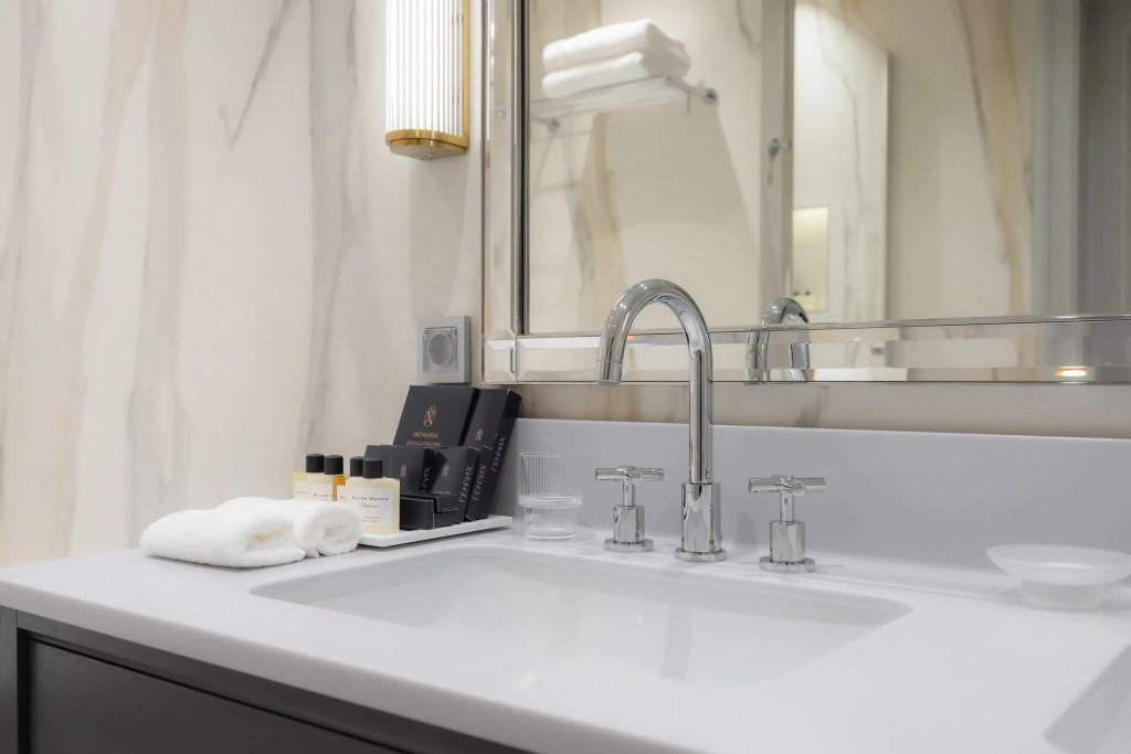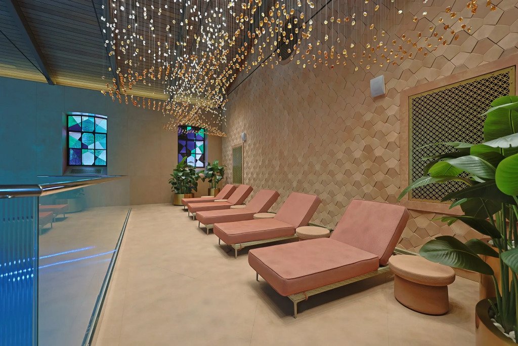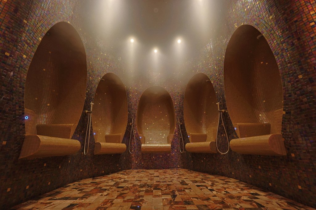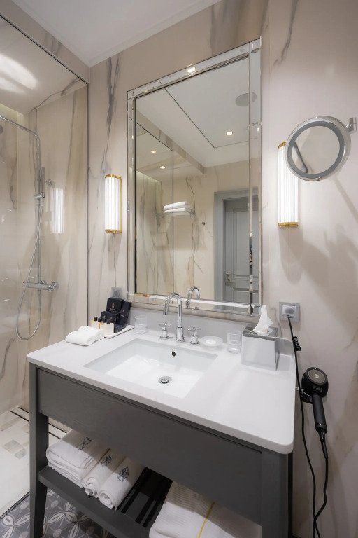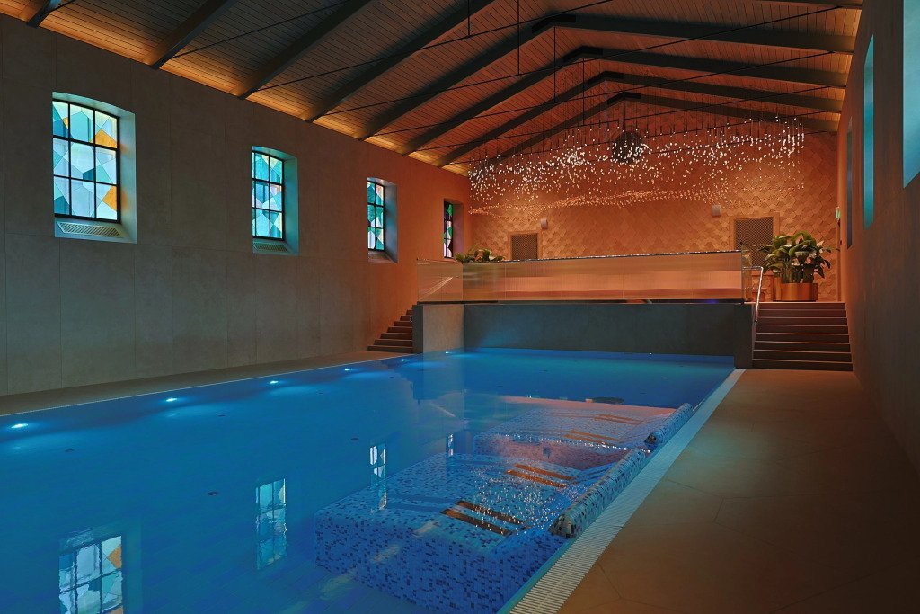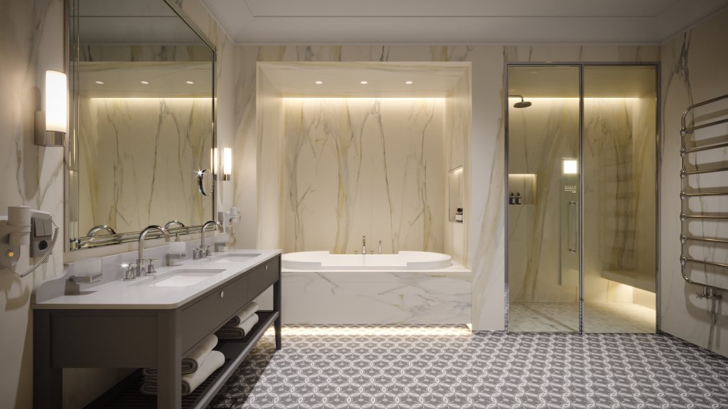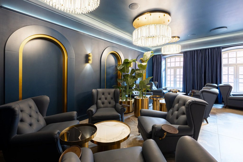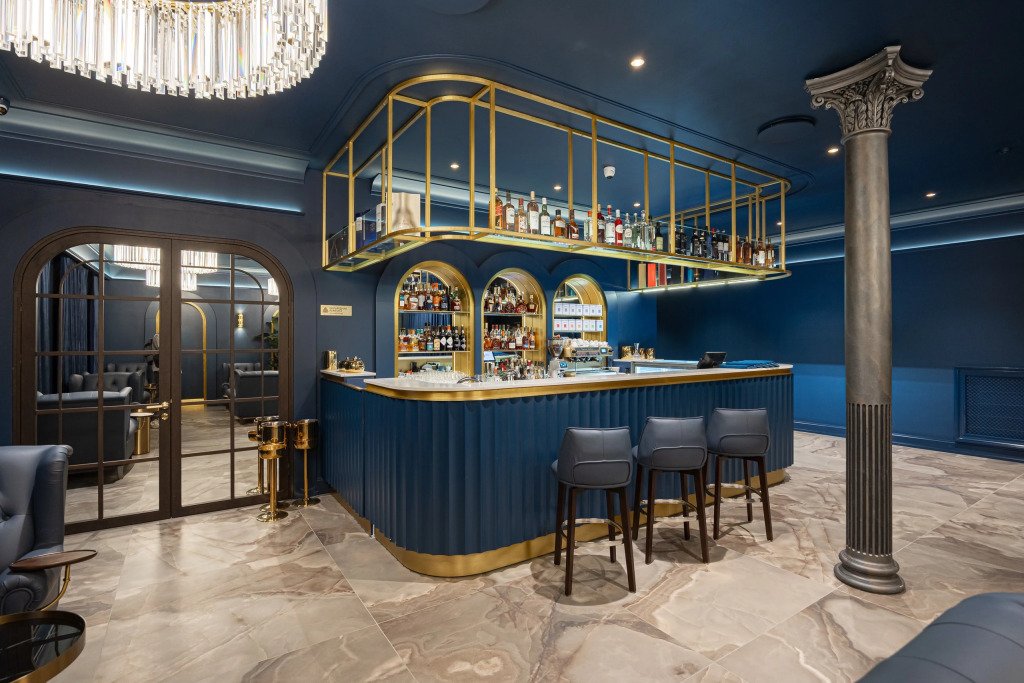 В отеле работает ресторан русской кухни с французскими элементами, бар, конференц-зал и зал мероприятий с террасой. Также доступен банный комплекс с бассейном, сигарная комната и бильярдная.