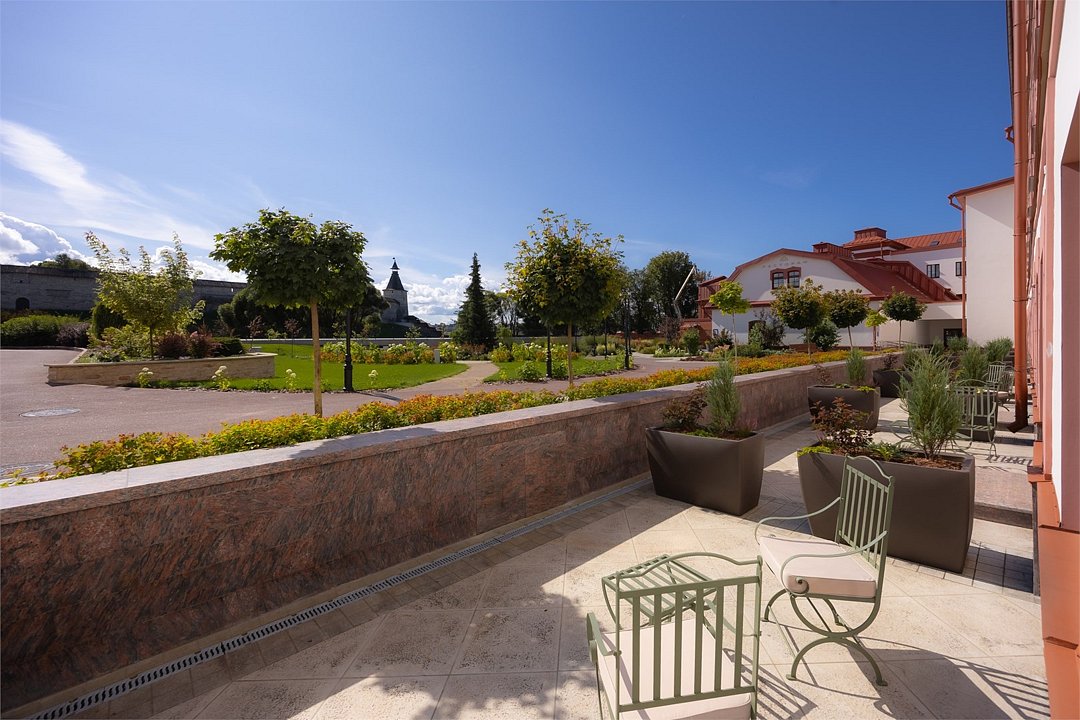 Номер с террасой- это уникальное место, предлагает комфорт и роскошь для отдыха. Он расположен на первом этаже отеля и имеет просторную террасу с прекрасным видом на Кремль.Услуги и удобства