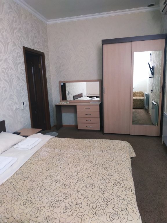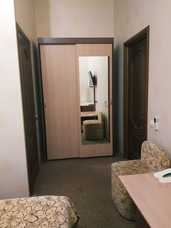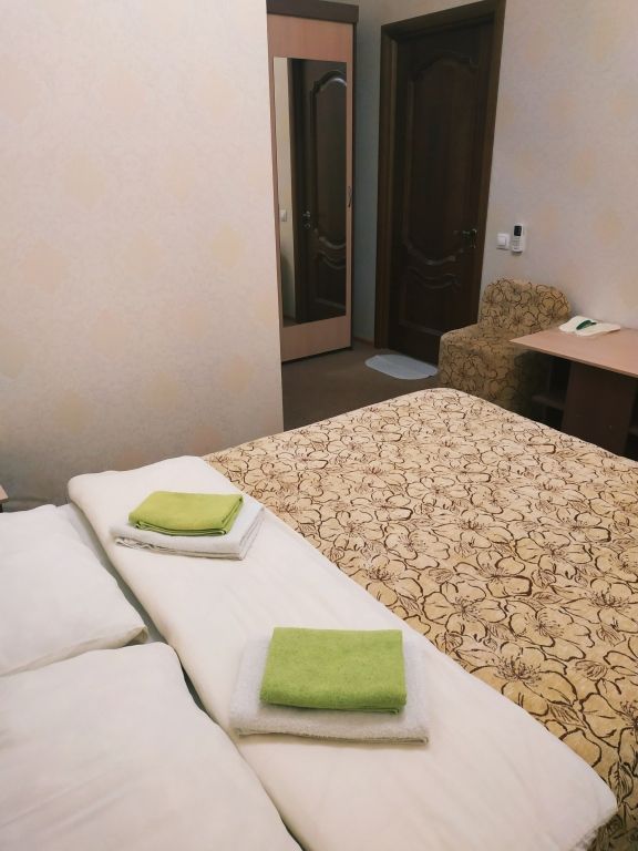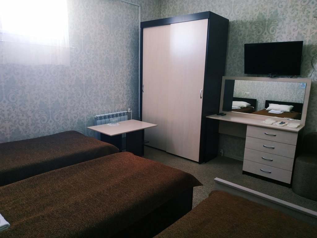 Короткий отпуск с друзьямиОтдых5.1.2017 заехали втроём в номер на троих. Цена=качество. Всё очень хорошо. Сотрудники приветливые, отзывчивые. В номере шкаф, 3 кровати , стол. Чай , кофе , кулер имеется. Единственно Яндекс карта ведёт дальше отеля)