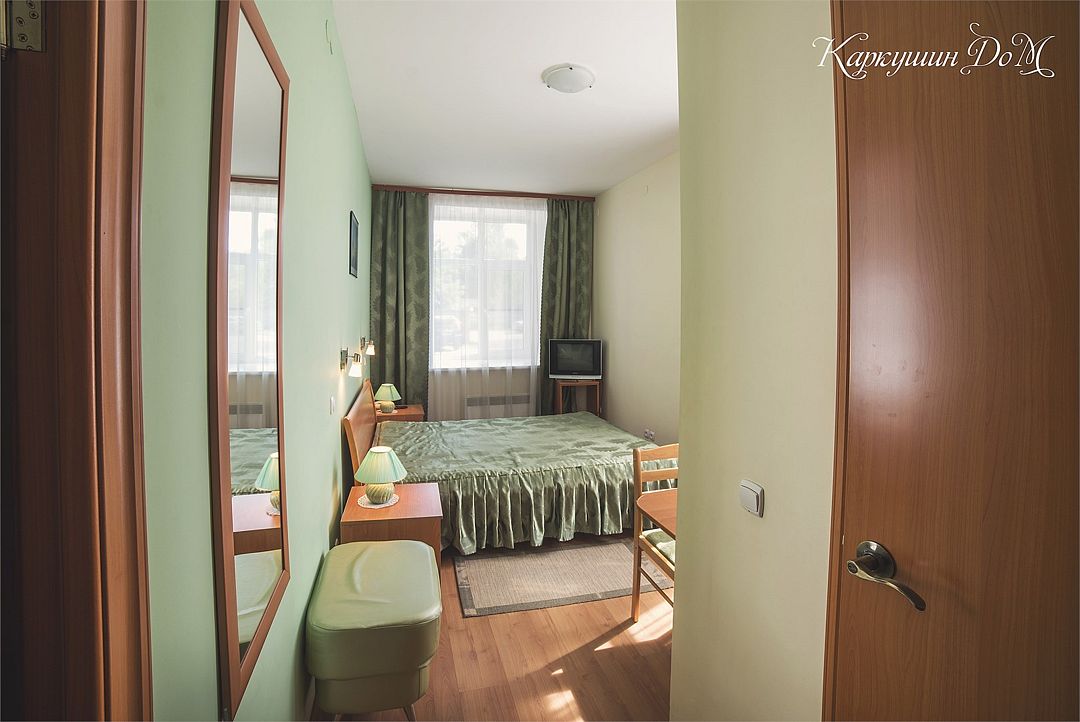 Путешествие с семьейМы не пожалели! :)Каркушин Дом оставил очень приятные впечатления! :) Приехала с 2-мя сестрами. С одной сестрой забронировала отель заранее (взяли Твин с отдельными кроватями), вторая сестра захотела с нами и буквально за сутки забронировала второй номер с одной большой кроватью и так получилось, что нам повезло: оба номера оказались смежными на втором этаже. Номера очень чистые, был холодильник, чистый санузел (не было гигиенических принадлежностей, но нам этот малюсенький момент не испортил отдых). Персонал просто отличный: девушка на ресепшене нам рассказала историю Каркушиного Дома. Оказывается, что у хозяев когда-то была немецкая овчарка по кличке Кара (Каркушей ее так ласково называли). Она спасла от пожара хозяев. В ее честь и назвали эту гостиницу. Теперь о кухне: у нас был включен завтрак. Так вот - это очень вкусно и разнообразно. К нам вышел повар и принес кофе. Ответил нам на вопросы. Парковка - это отдельный респект! Расположение это вообще бомба: тихая улочка, хотя рядом находится парк и Кремль в 10 минутах ходьбы, где туристов просто море. Рядом с Кремлем ресторан немецкой кухни Мюнхель (не очень дорогой). Псков нам очень понравился, поэтому.... мы возвращаемся в этот прекрасный город и остановимся в этой гостинице 28 сентября! :) В этот раз взяли Президентский номер. Сравним :). Городок наичистейший! Наружная реклама вся в белом виде, что очень радует глаз, но и видно ее хорошо. P.S. можно с животными. Нам встретились в отеле пара корги. Презамечательные песики! И да! Там еще живет котейка! :) Всем приятного отдыха! :)