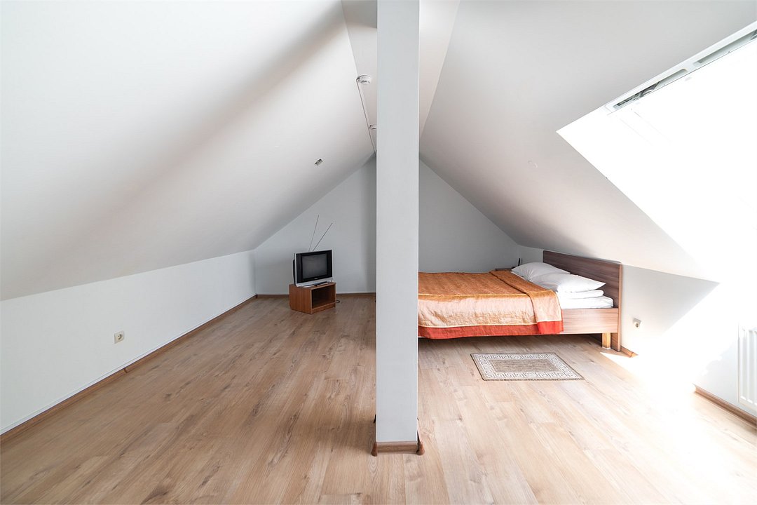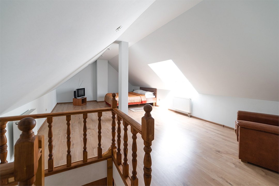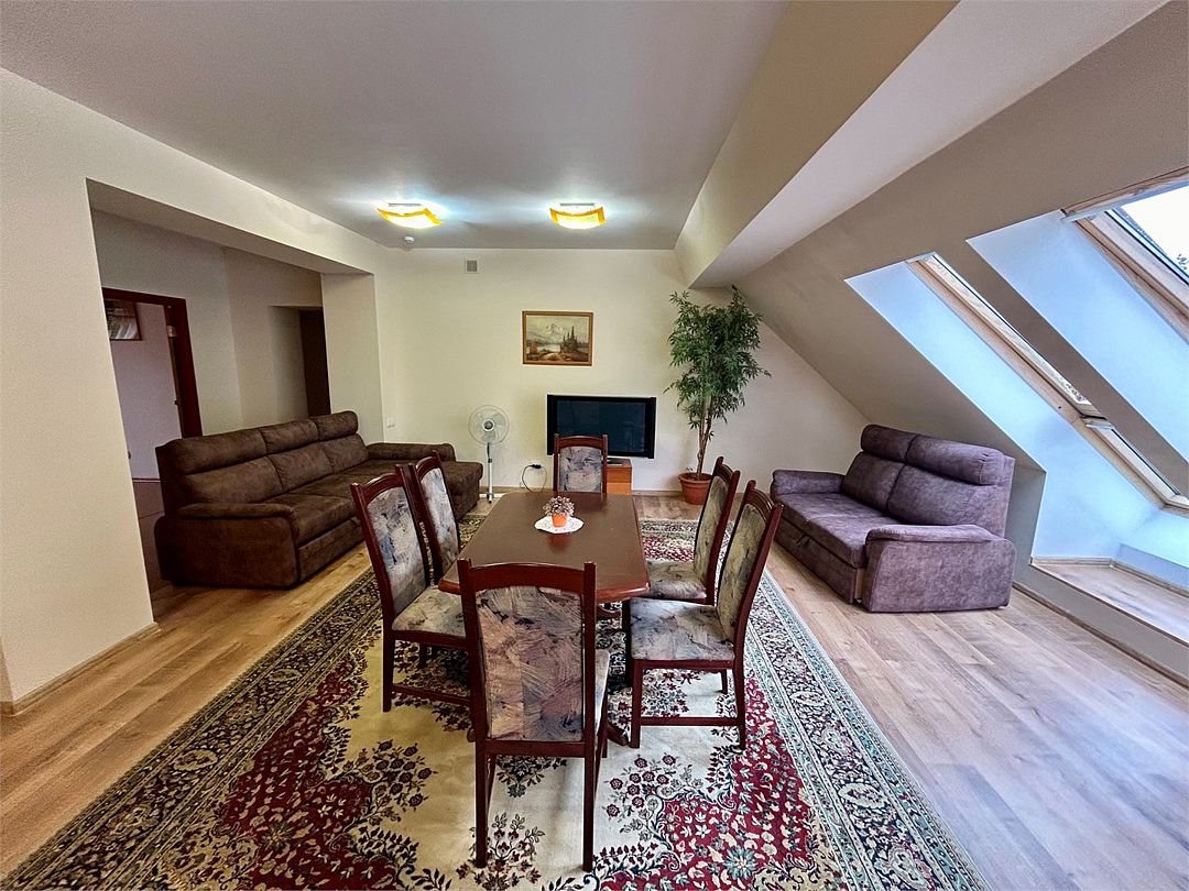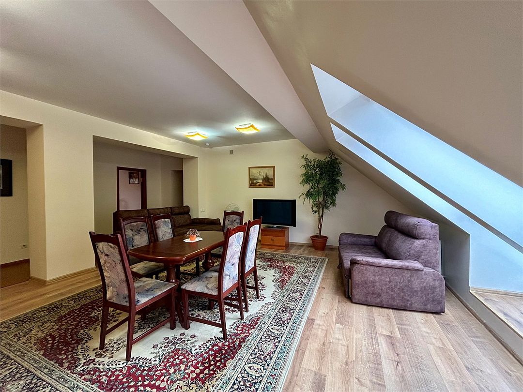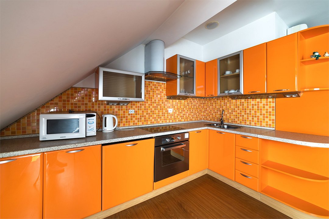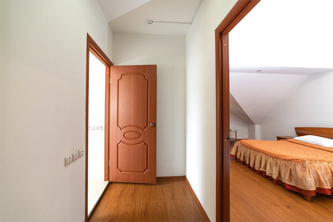 Двухуровневые апартаменты для 6-ти взрослых (площадь 120 кв.м.) – апартаменты с кондиционером располагаются на двух уровнях (второй уровень – мансарда). Номер имеет 3 спальни и 3 санузла. В общей кухне-гостиной со всей необходимой бытовой техникой, можно приготовить еду и собраться за общим столом или комфортно расположиться на диванах перед TV. В собственной ванной комнате имеются бесплатные косметические принадлежности, предоставляются халаты. По запросу в номер может быть предоставлена детская кроватка (бесплатно). Дополнительное место организуется на диване в гостиной (платно).Услуги и удобства