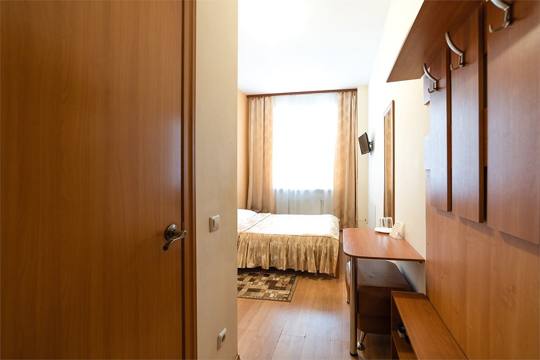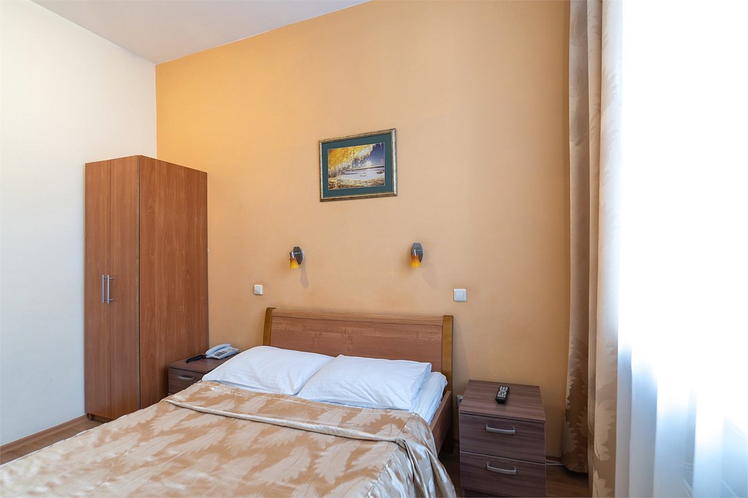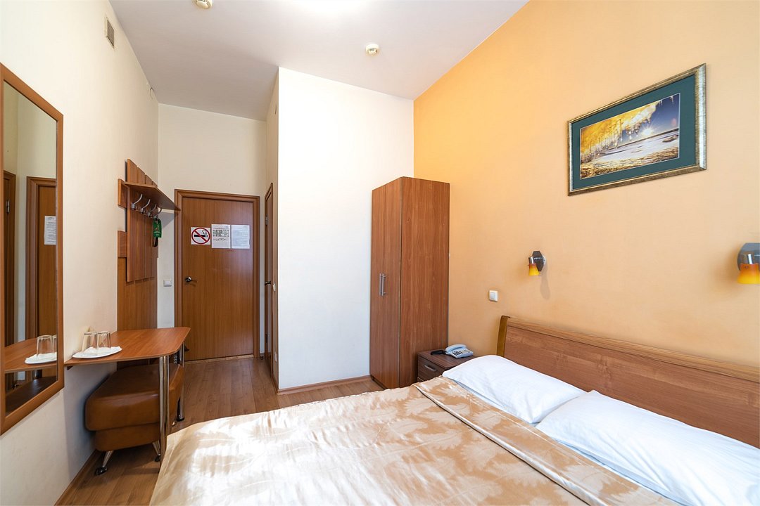Классический одноместный номер оборудован собственной ванной комнатой, кабельным TV и бесплатным Wi-fi. В номере располагается двуспальная кровать, откидной столик.Услуги и удобства