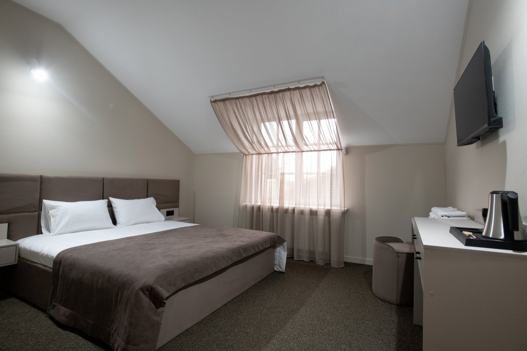 В номере гостей ждут телевизор и халат. Перечисленные услуги есть не во всех номерах.