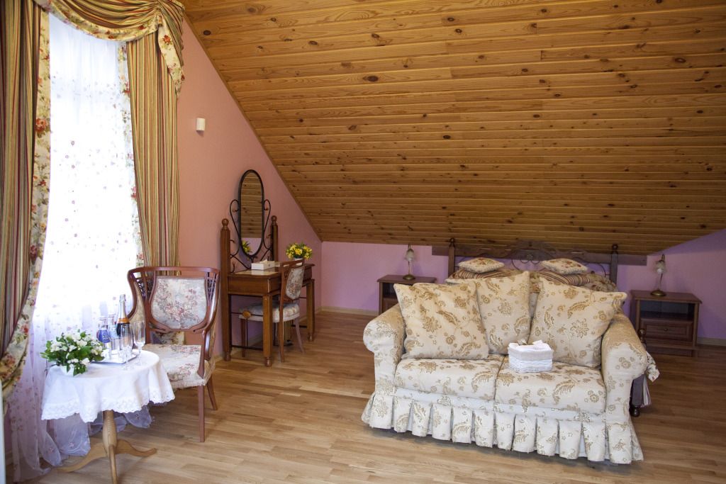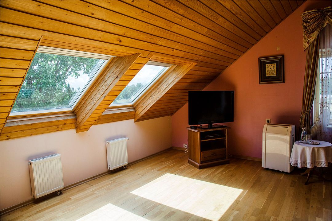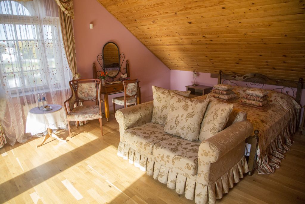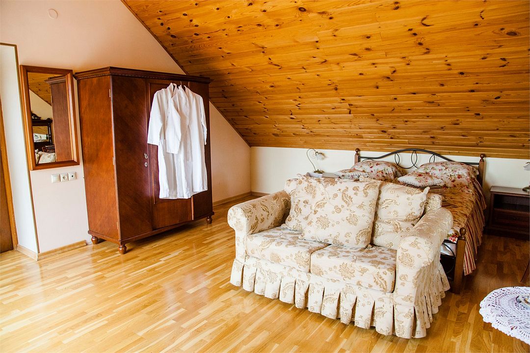 Проживание гостям устроено в комнатах-мансардах с отличными условиями и прекрасными видами из окна.