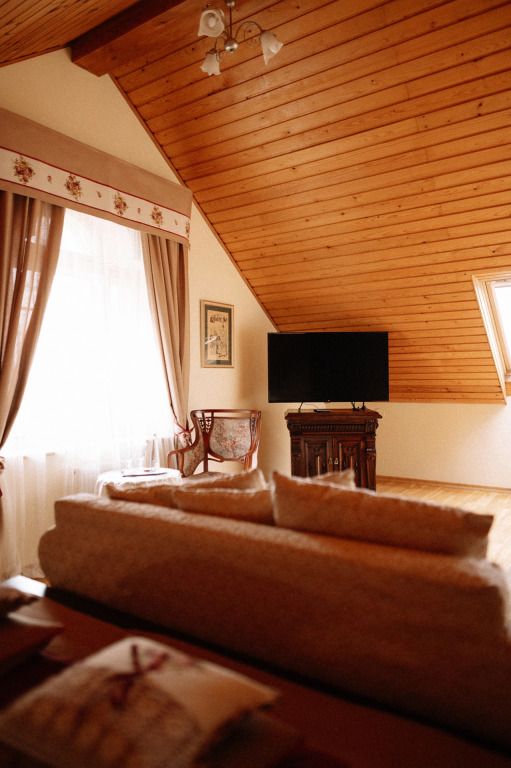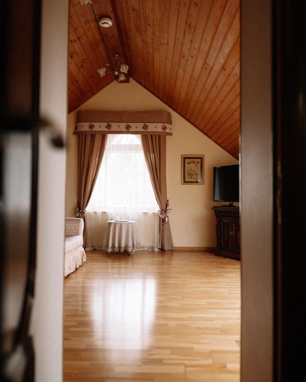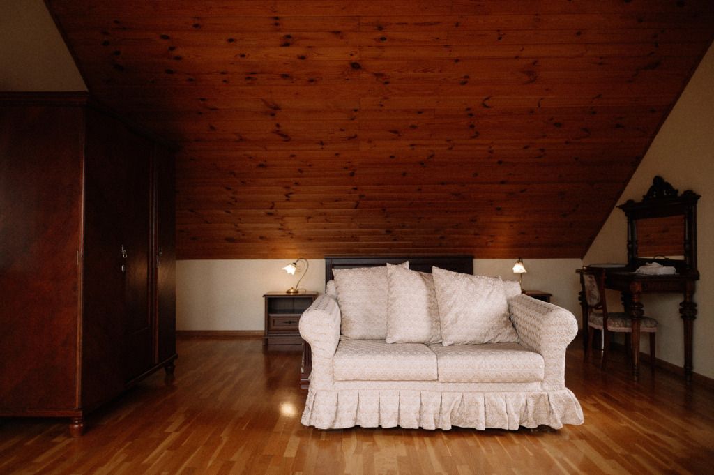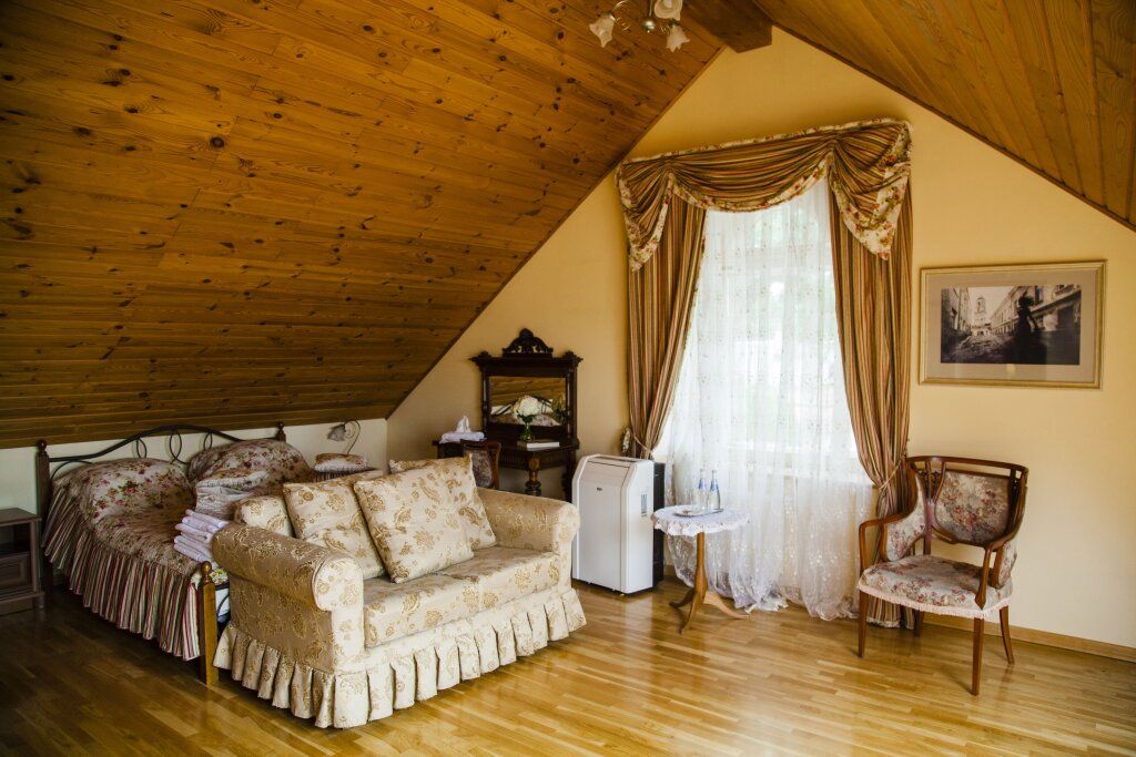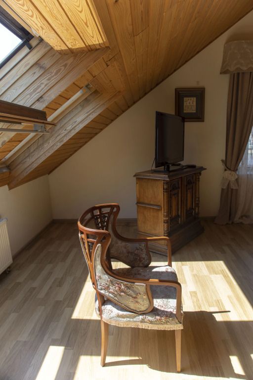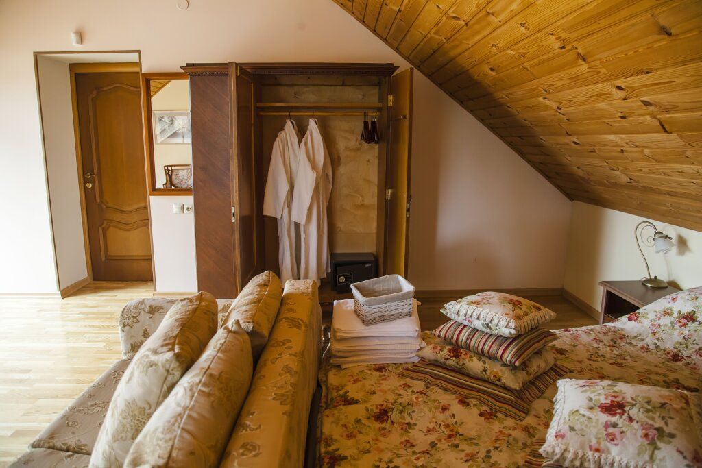 Проживание гостям устроено в комнатах-мансардах с отличными условиями и прекрасными видами из окна.