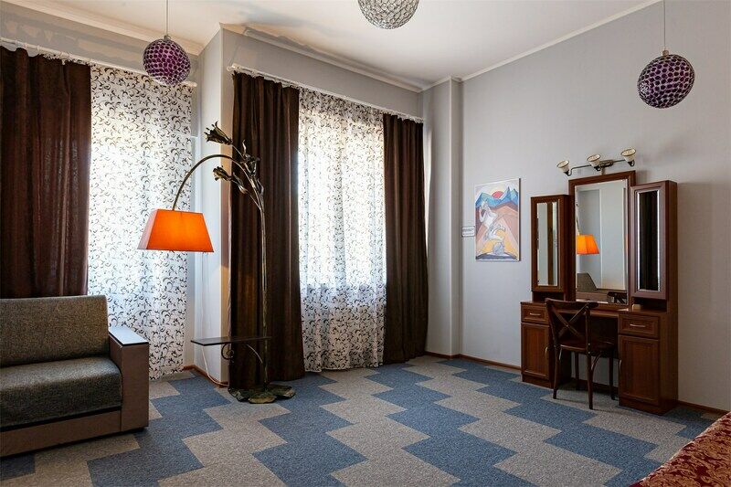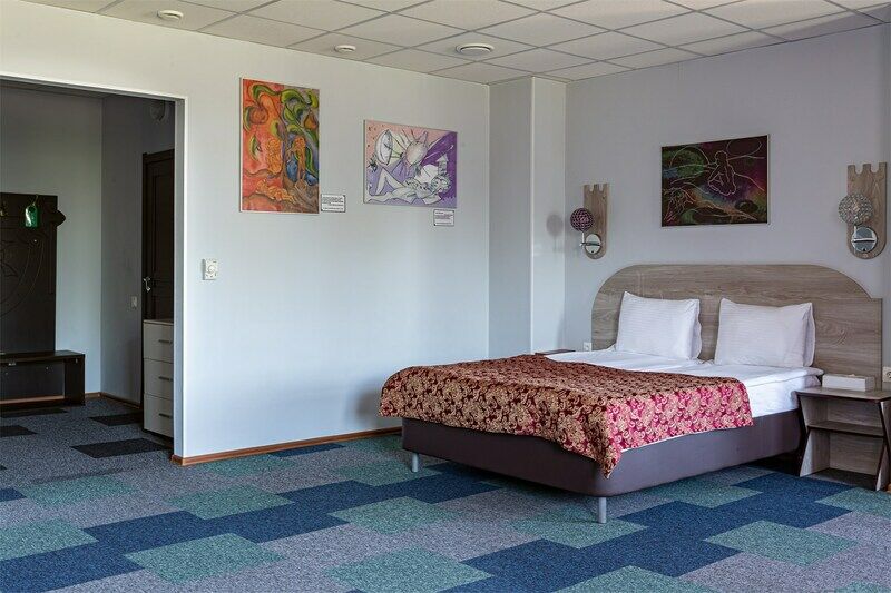 располагается в трехэтажном, стилизованном под сказочный замок, здании с башнями-ризалитами. Гостиница предлагает отдыхающим 105 номеров разных категорий — от Стандарта до Апартаментов. Светлые просторные номера оснащены всем необходимым — санузлом с душем, бытовой техникой, удобной мебелью. В апартаментах есть собственная кухня и джакузи.