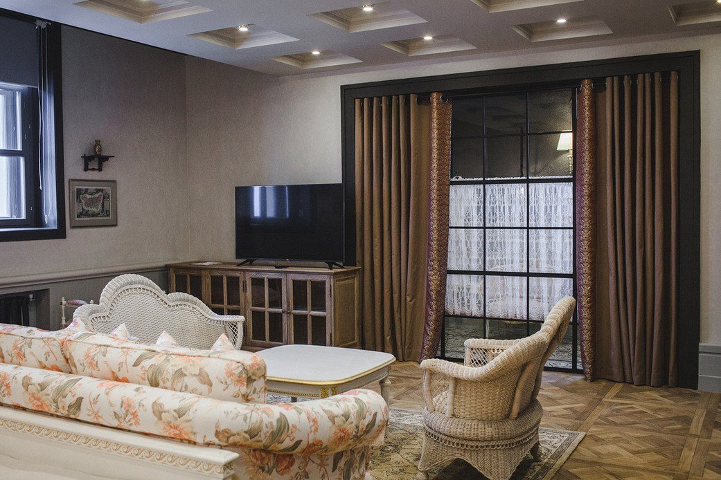Wi-Fi, телефон, фен, вентилятор, душевая кабина, халаты, косметические средства, двуспальная кровать, односпальная кровать, стулья, шкаф для одежды, обеденный стол, чайный набор, информационная карта, меню, сейф, минеральная вода, чайник, питьевая вода, вид на город, высокие потолки, туалетный столик, мини-холодильник, телевизор со Smart TV, антикварная мебельВ номере