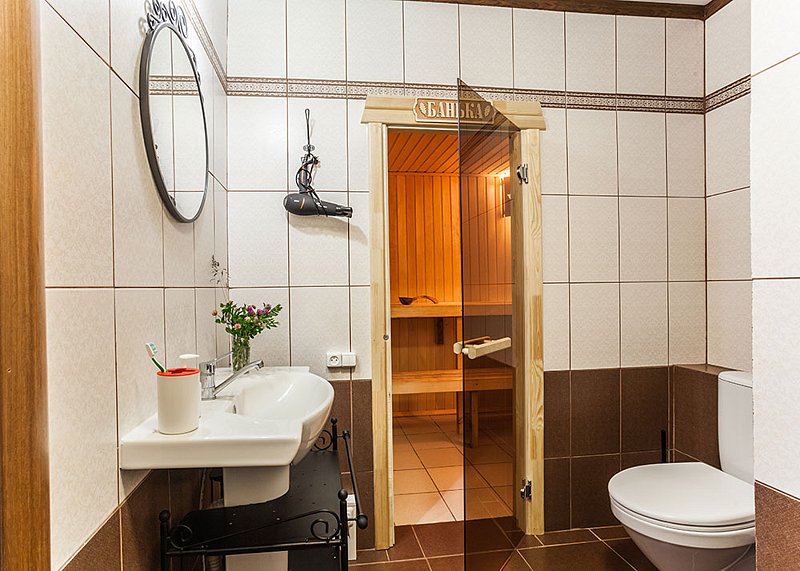 Сауна с вениками располагается в каждом доме. Пользование входит в стоимость проживания.