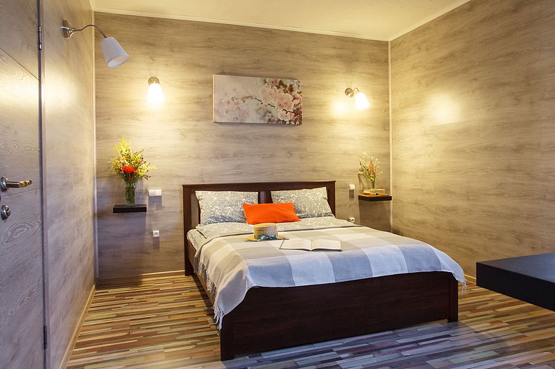 - Отдельная спальня с двуспальной кроватью (160 см);