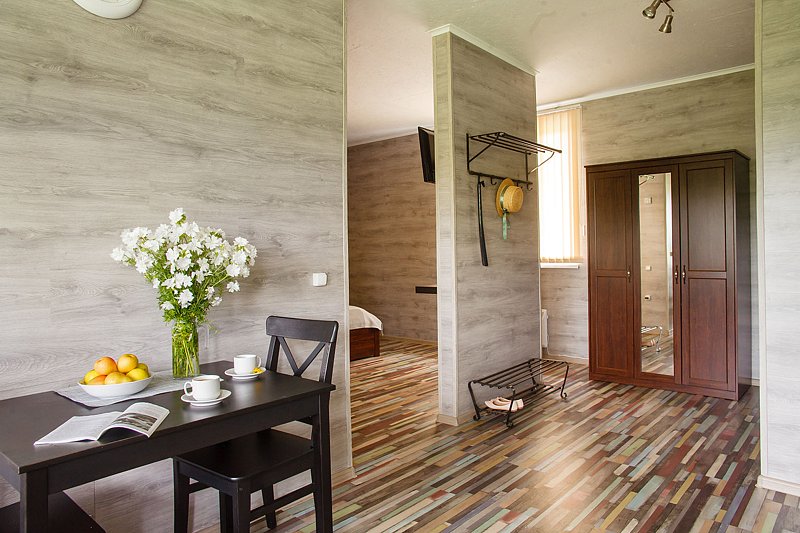 Просторные номера оснащены всеми удобствами для проживания с комфортом. В распоряжении постояльцев будут: телевизор с плоским экраном и спутниковыми каналами, собственная ванная, фен, диван, стол со стульями.