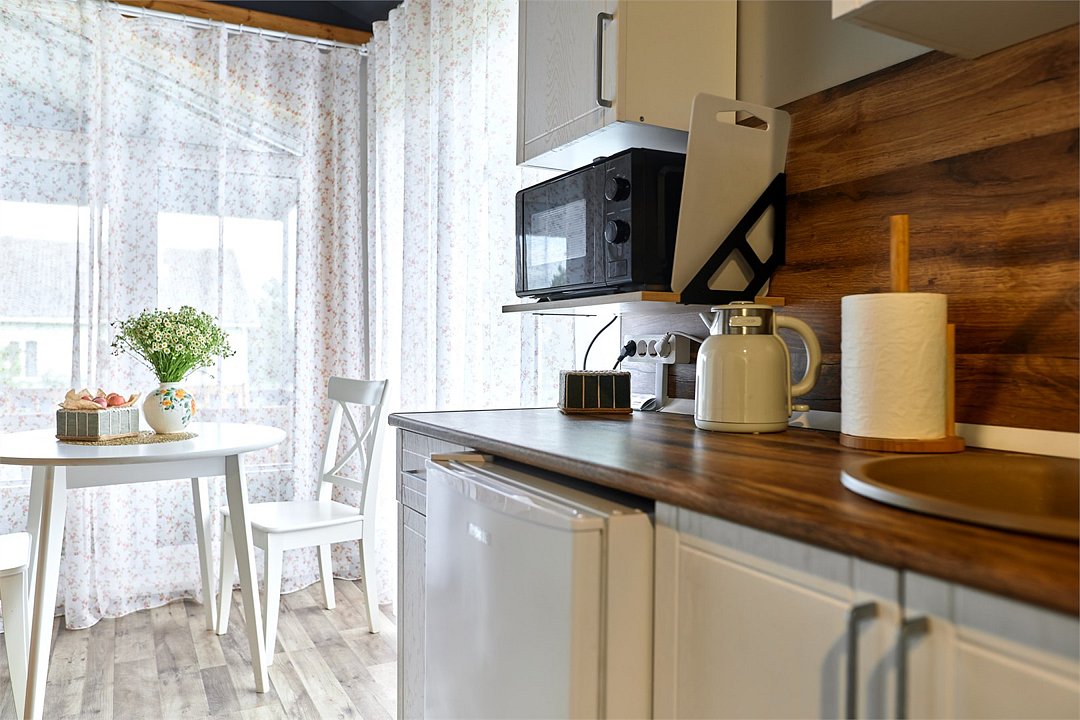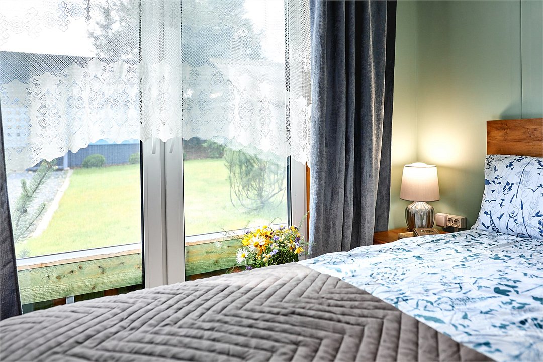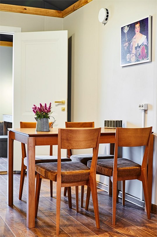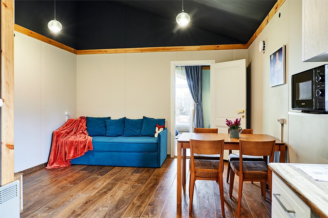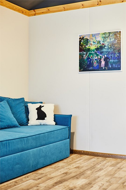 Уютный семейный номер для 2-4 человек - это уют загородного дома и комфорт современного отеля. В номере выделены спальная комната, гостиная и обеденная зоны. Диван, раскладываясь, превращается в полноценное двуспальное место. В номере собственная ванная комната с душевой кабиной. Отдельный вход позволяет не пересекаться с другими гостями.Услуги и удобства