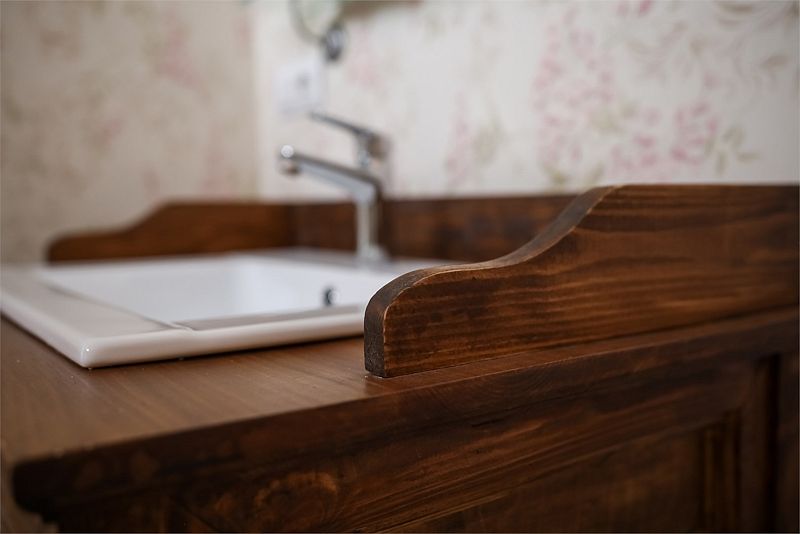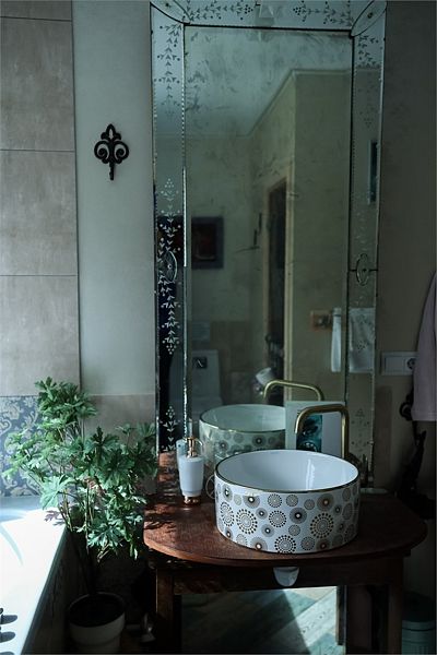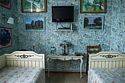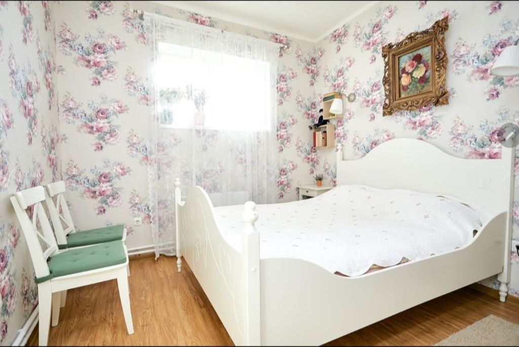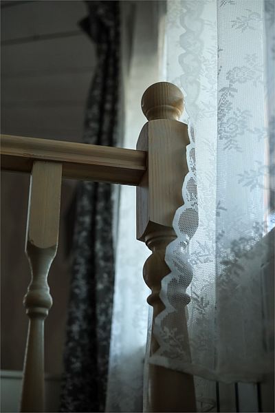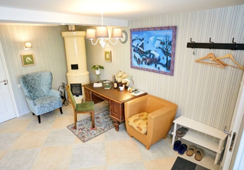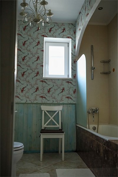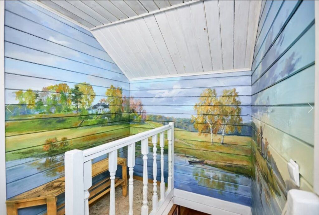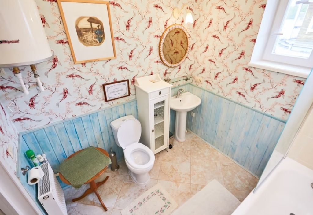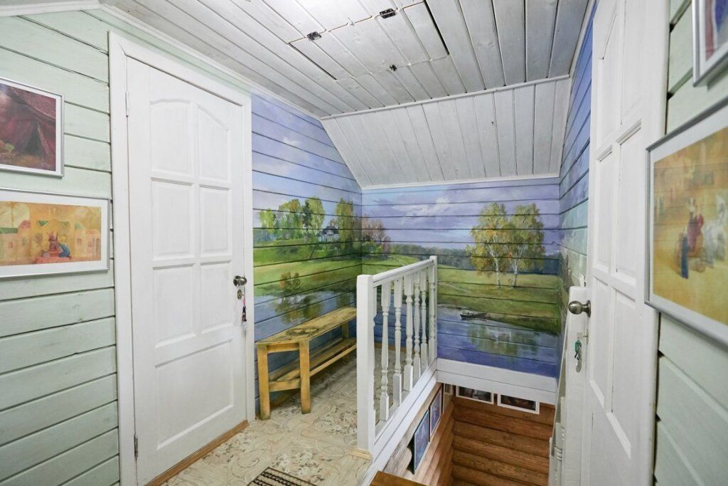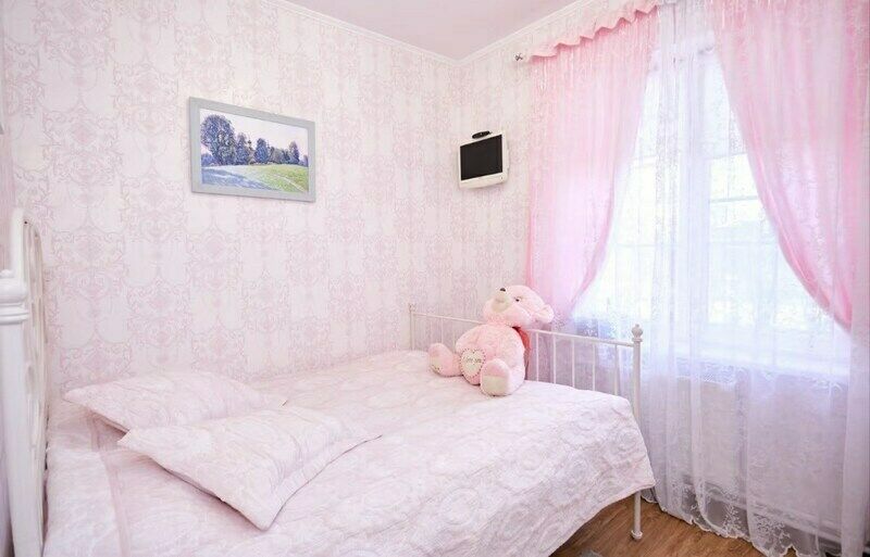 Дизайн помещений выдержан в милом мещанском стиле дворянских имений времен Пушкина. Цветочные обои, обои с зимнем пейзажем, статуэточки, картины, кружева, оборочки, цветные одеяла, множество милых вещиц составляют уютную душевную атмосферу этого места.