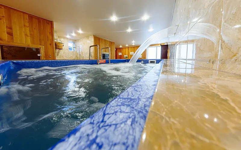 Баньки: соляная, шунгитовая, хамам, арома и финская. Гидромассажный бассейн.