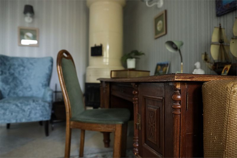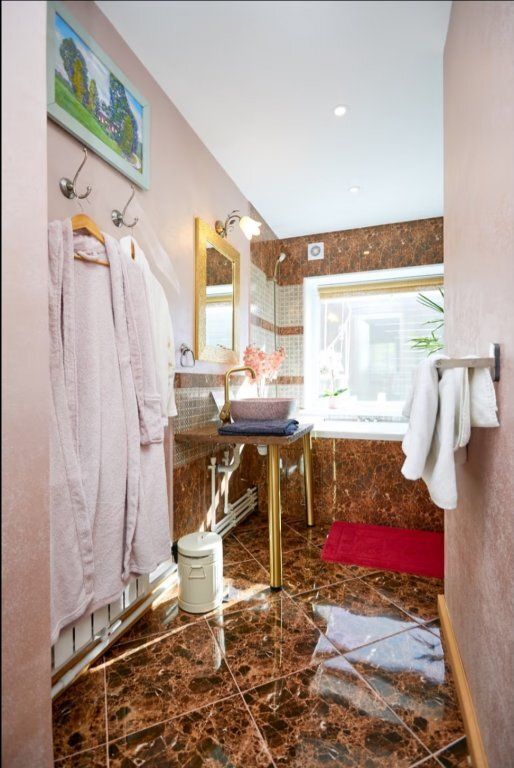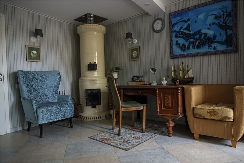 - помимо этого номера мы могли сидеть в гостиной с камином (я могу ошибаться, но мне кажется, мы могли попросить разжечь его - там были дрова), могли в комнате-библиотеке, могли в беседке на улице, могли в красивейшей веранде. То есть это действительно дом со множеством помещений, где можно отдыхать, а не просто маленькая студия за Х в сутки. Кстати, для туристов, которые не готовы кушать только в ресторанах - есть мини-кухня с холодильником, микроволновкой и чайником. Можно пользоваться и готовить самим, но в усадьбе тоже можно обедать.