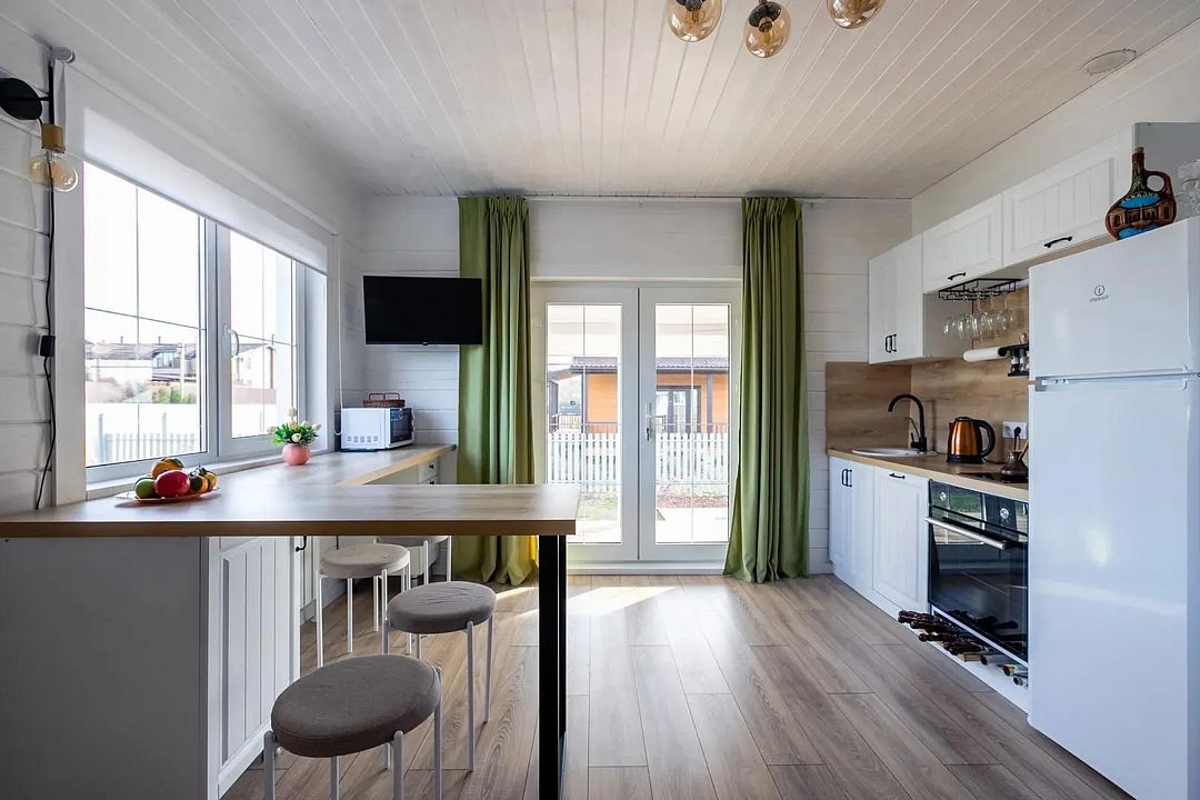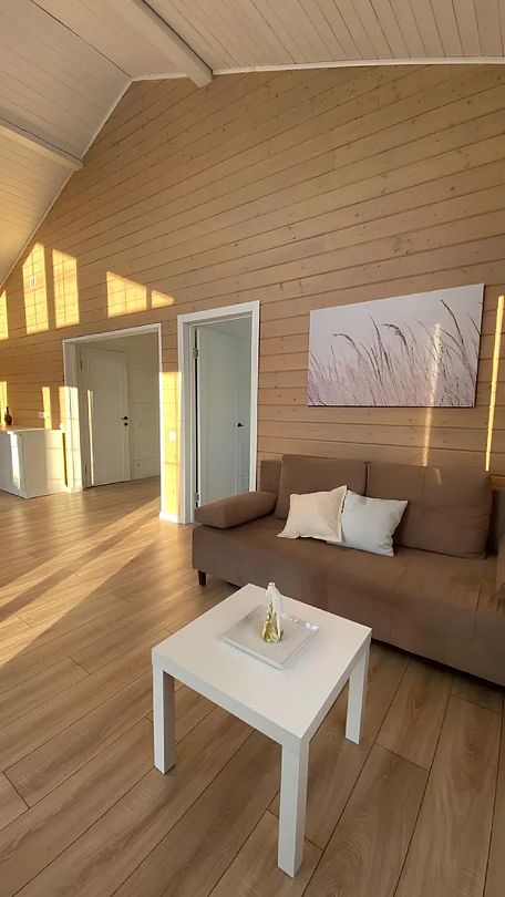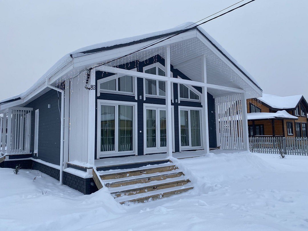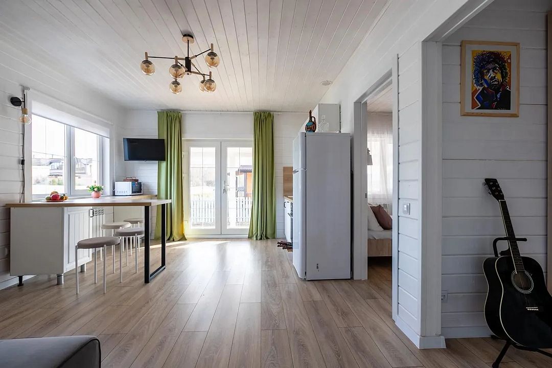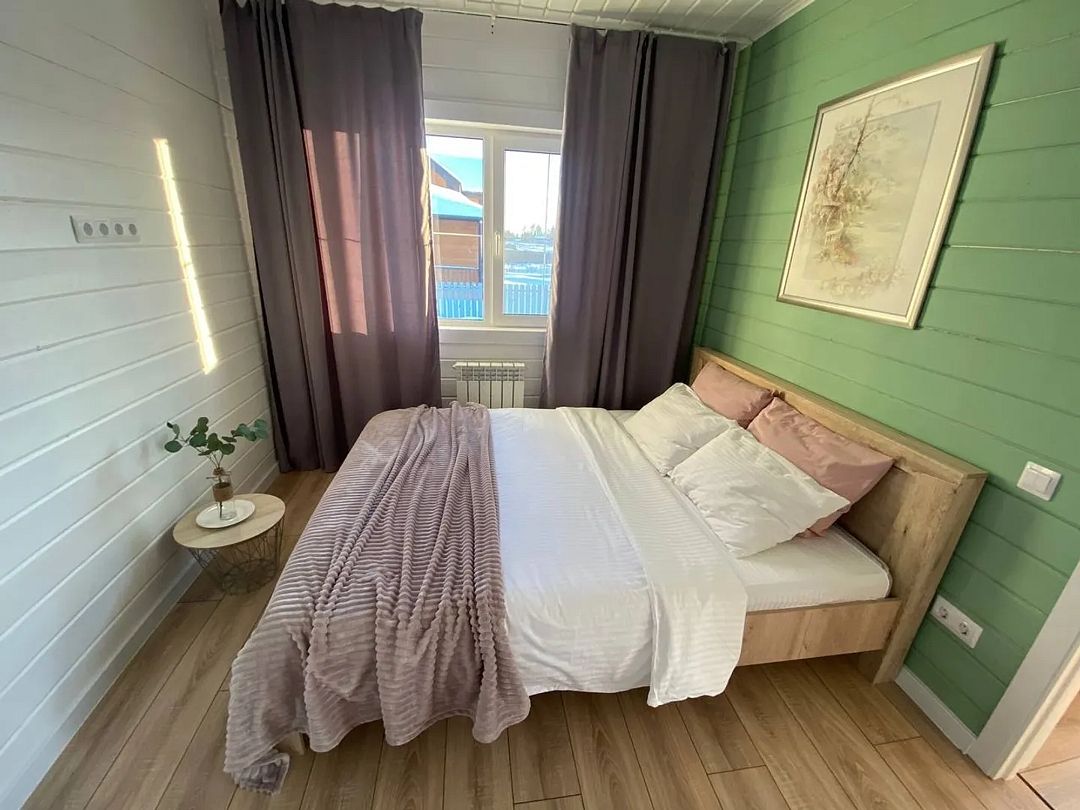 В доме три изолированные спальни с двуспальными кроватями, просторная гостиная, отдельная кухня-столовая с посудомоечной машиной и полным комплектом посуды, а также стильная мебель, телевизор со Smart-TV, умная колонка Алиса и множество других удобств.