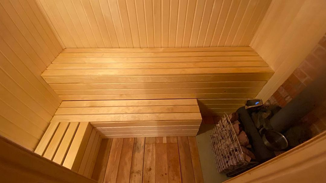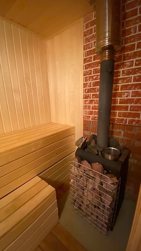 На участке расположена баня на дровах, зона барбекю с мангалом, кострищем и шампурами, парковка на два автомобиля и две солнечные террасы.