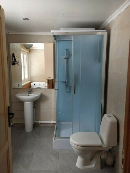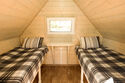В маленьком, но очень уютном летнем домике размещены две односпальные кровати и прикроватный столик. Домик оборудован розетками. А душ и туалет находятся в 30 метрах.