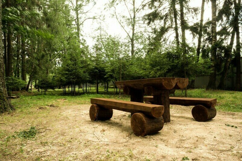 - лесная опушка: вместимость до 6 человек, открытая площадка, деревянная мебель, мангал;