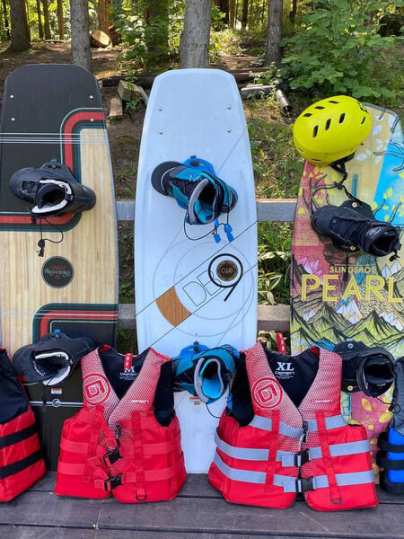Прокат оборудования:- вейкборд (мультиразмерные крепления) мужской, женский — бесплатно;