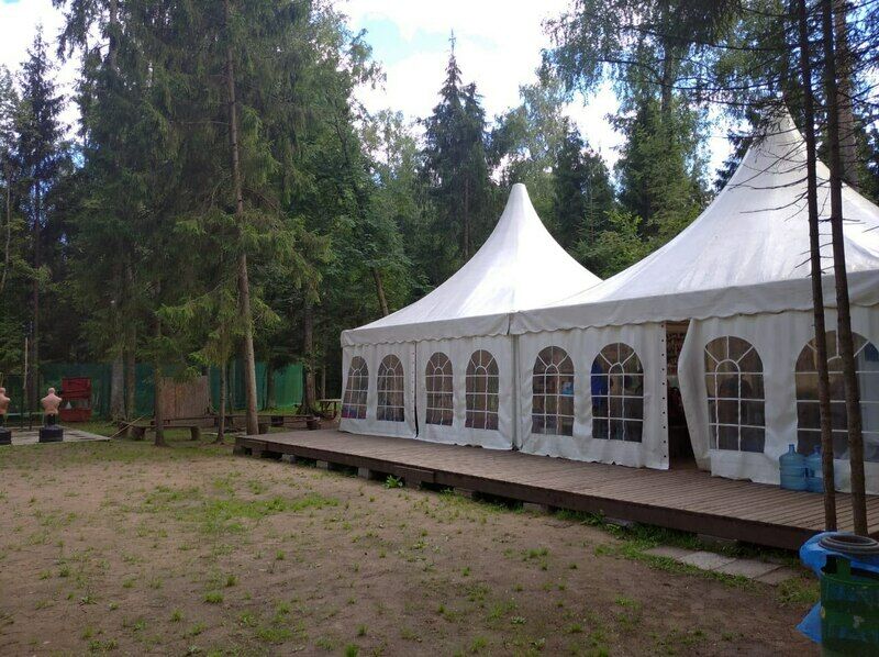 - шатровый комплекс & спортивная площадка (мини футбол): вместимость до 60 посадочных мест, кухня с подведенными коммуникациями, деревянная мебель, освещение, мангал, спортивная площадка с искусственным покрытием (газон) для игр с мячом;