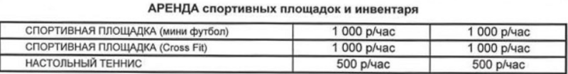 - малый шатровый комплекс & спортивная площадка (Cross Fit): вместимость до 25 посадочных мест, кухня с подведенными коммуникациями, деревянная мебель, освещение, мангал.