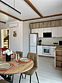 На 1-м этаже просторная кухня-гостиная с обеденной зоной на 4-6 гостей, удобным диваном и ТВ. Кухонная зона оборудована всем необходимым, включая фильтры для воды, индукционную плиту и духовку, вместительный холодильник, СВЧ, ПММ, эл. чайник, посуду для готовки и сервировки стола.
