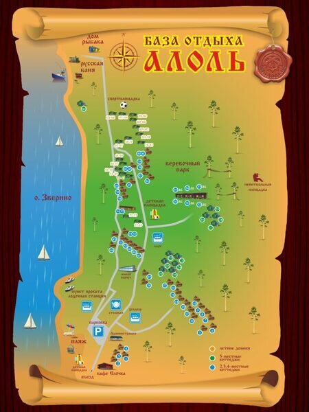 Здесь понравиться взрослым и детям. Для самых маленьких оборудована детская игровая площадка на улице. В числе услуг: прокат лодок, катамаранов. Желающие могут поиграть в настольный теннис.