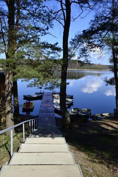Вы можете отправиться на прогулку пешком или на велосипеде, осмотреть окрестности, лес или территорию базы. Любители рыбалки могут посидеть на берегу озера с кристально чистой водой, Здесь можно поймать: окуня, щуку, язя, леща, линя и другие,