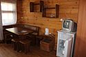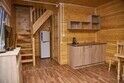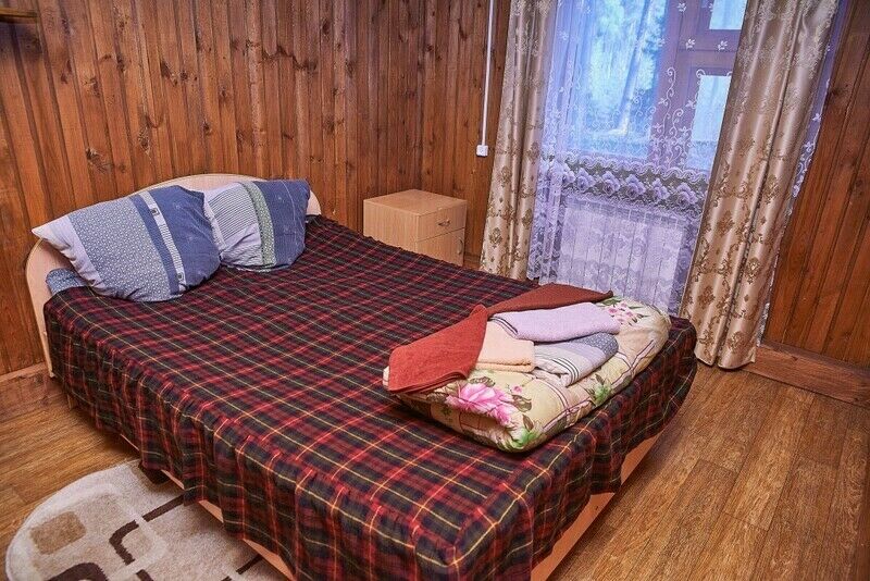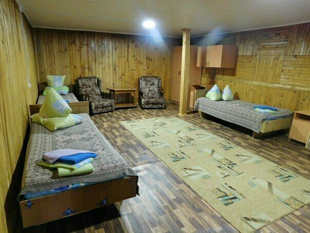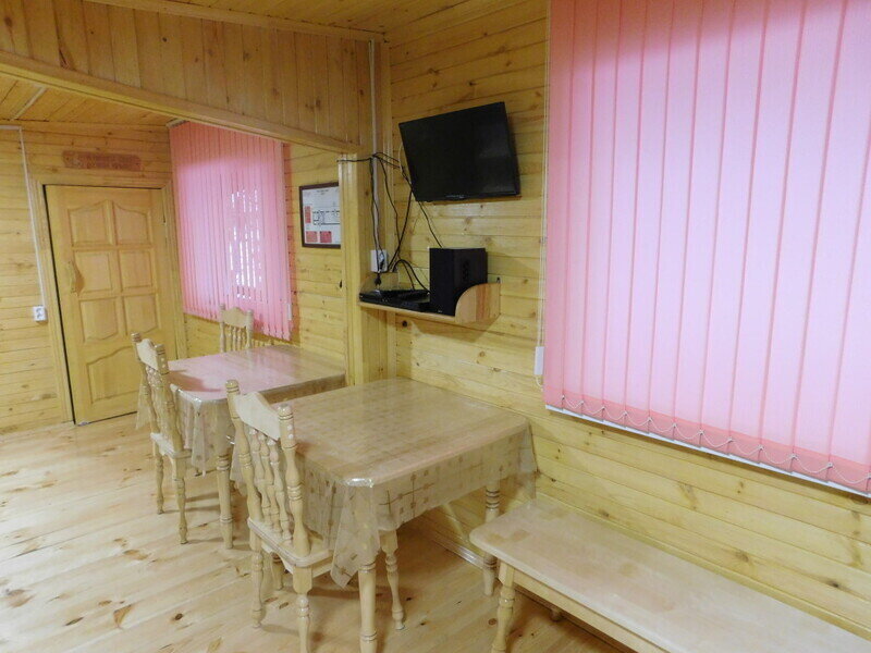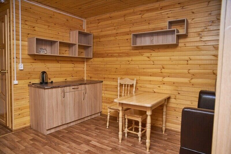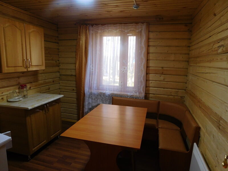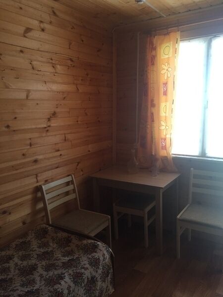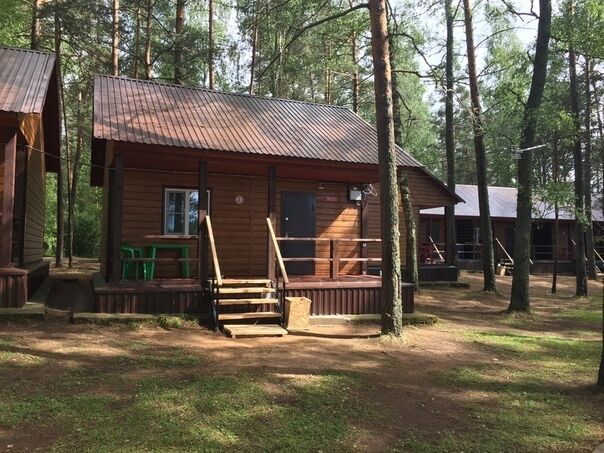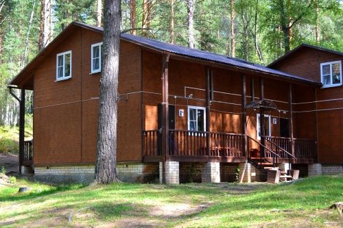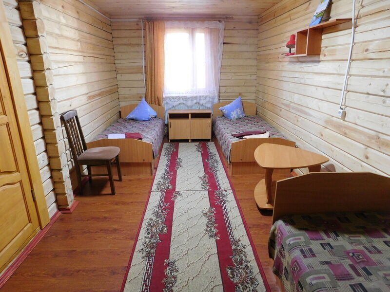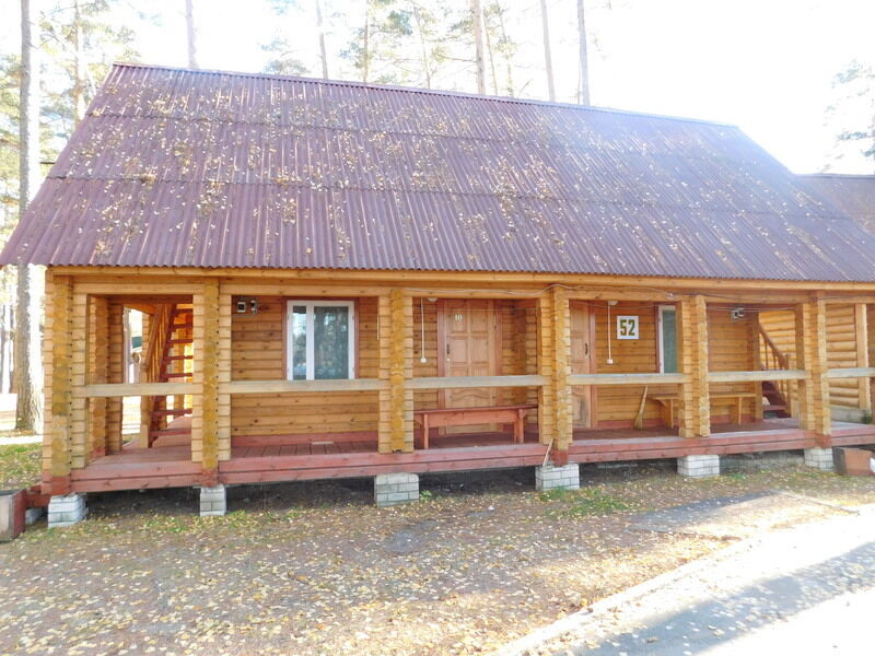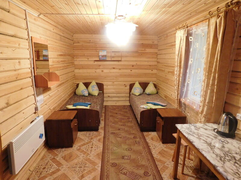 Рубленый деревянный двухэтажный коттедж (первый этаж). Работает круглый год. Позволяет с комфортом разместиться четырем взрослым. На первом этаже две комнаты по 2 места, комната отдыха, душ, туалет. В комнате отдыха холодильник и телевизор.