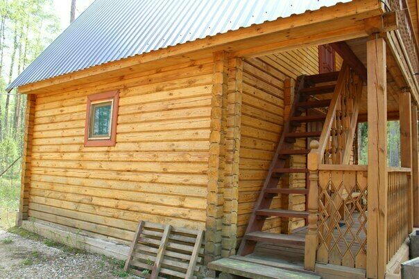 Двухэтажный рубленый коттедж на троих отдыхающих из натурального дерева.
