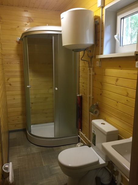 Имеется комната отдыха, спальня, туалет, душ. В домике есть холодильник, чайник, телевизор.